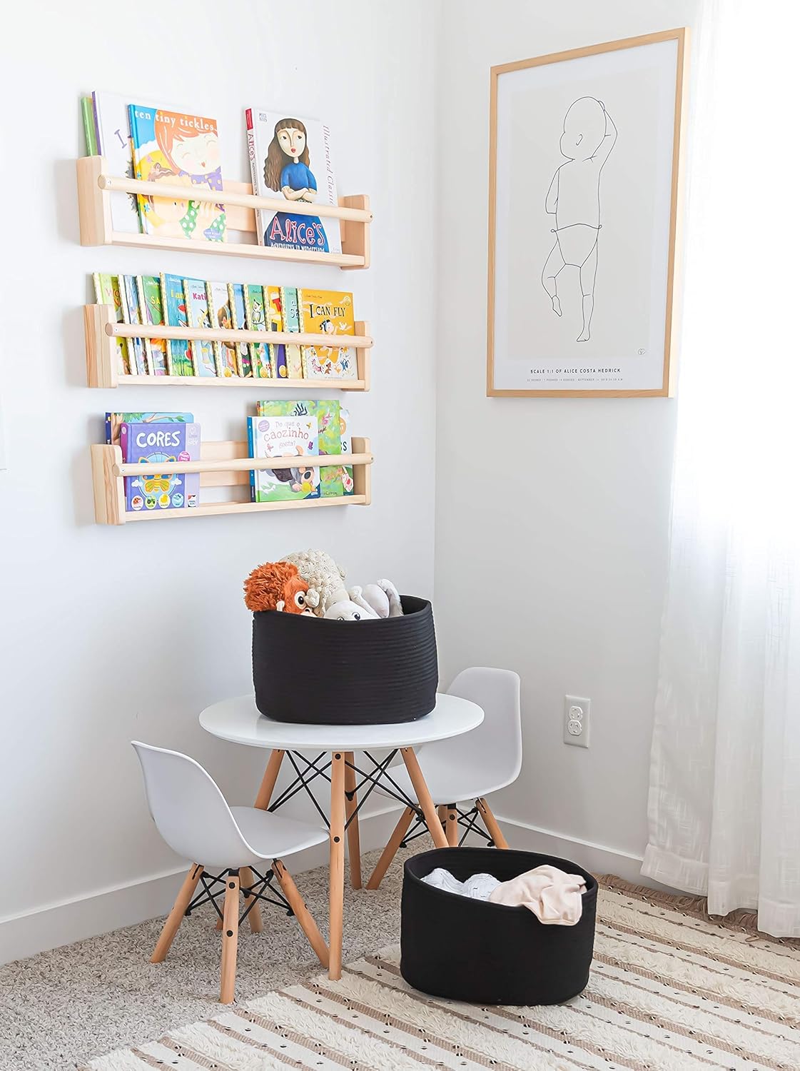 - Discrete, Built-In Carry Handles – These fabric rope baskets for storage also feature slim hand holds built right into the sides of each round basket for a seamless look that’s also functional. Perfect for picking up toys or carrying items around the house.