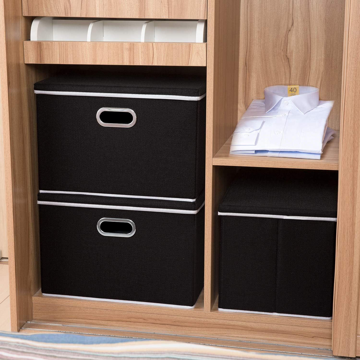 - 【Space Saving】Sturdy side design makes these bins collapsible which will take full advantage of your closet shelf, and also can be folded flat to save space when not in use.