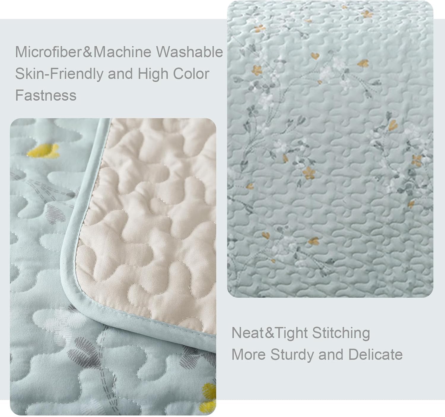 - Design: Floral branches patterns are printed with special printing and dyeing crafts which make color more vibrant and ensure a better color fastness. Sewed with exquisite neat stitching, the aqua flowers bedspreads bring a stylish and elegant decoration to your bedroom