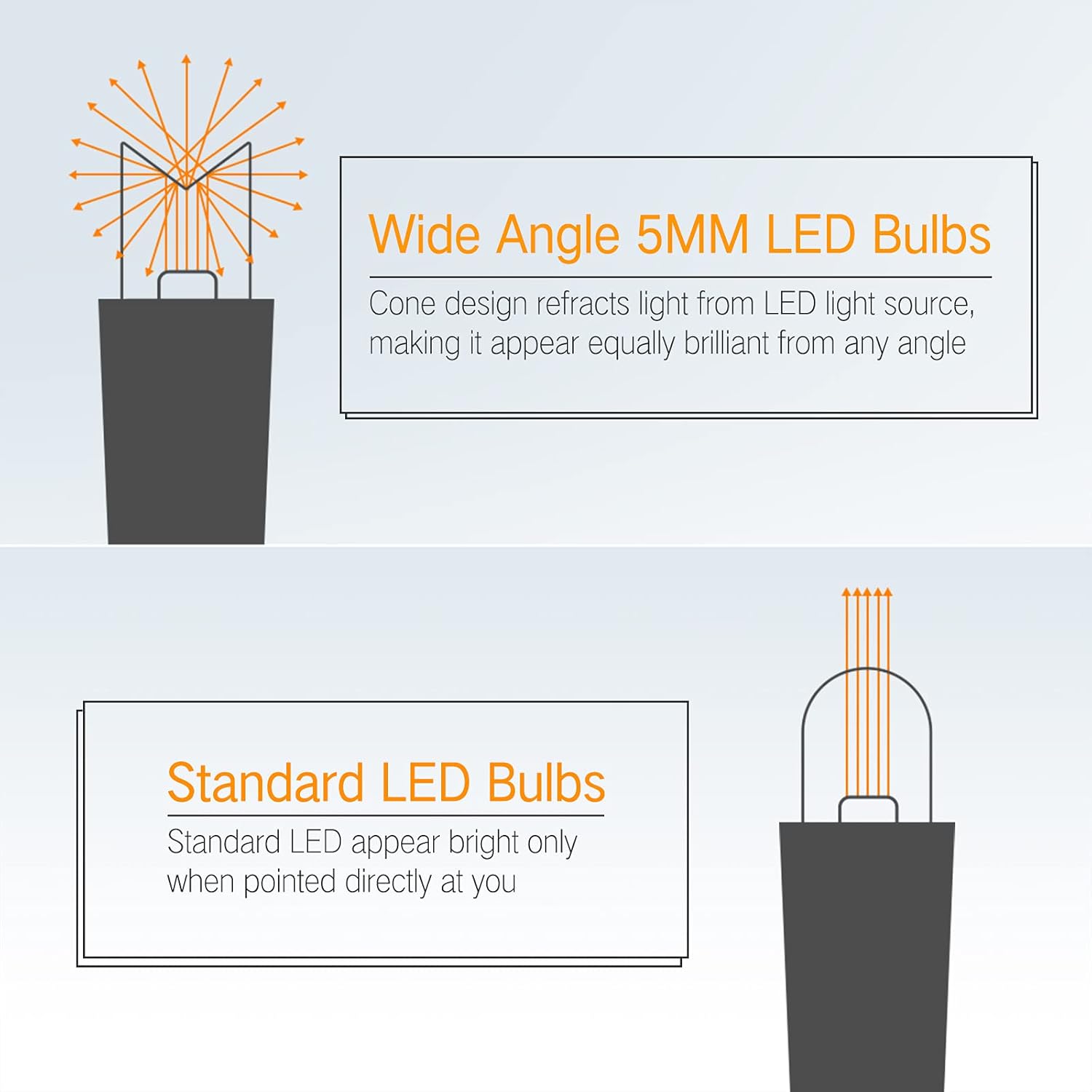 - Wide Angle, Brighter Halloween Lights Decor: Designed with a concave lens, these wide-angle bulbs are 25% brighter than standard-shaped light strings and disperse light equally in all directions, making your decoration shine brilliantly from any viewing angle.