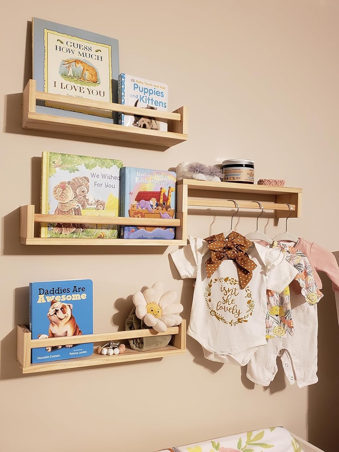 - ✅STURDY CONSTRUCTION – Organize your childrens books, toys, small picture frames, and other decorative pieces with this Nursery Room Wall Shelf Set. It is made with a sturdy, solid wood and has an understated yet functional design that is great for bedrooms, kitchens, and bathrooms