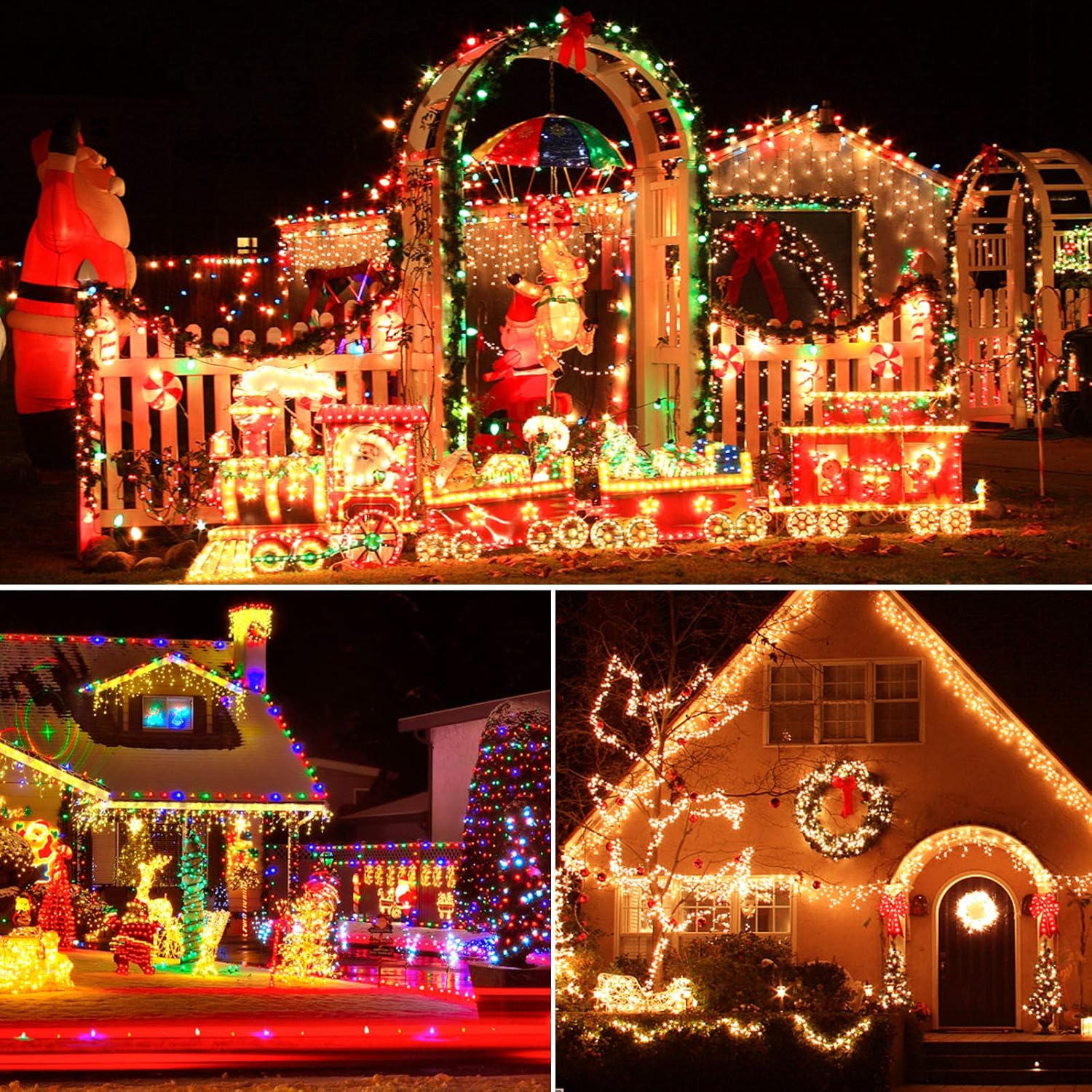 XTF2015 Christmas Outdoor Indoor Lights, 105ft 300 LED End to End Connected 9 Modes Timer Remote Christmas String Lights for Trees, Patio, Garden, Party, Wedding, Holiday (Warm White + Multicolor)
