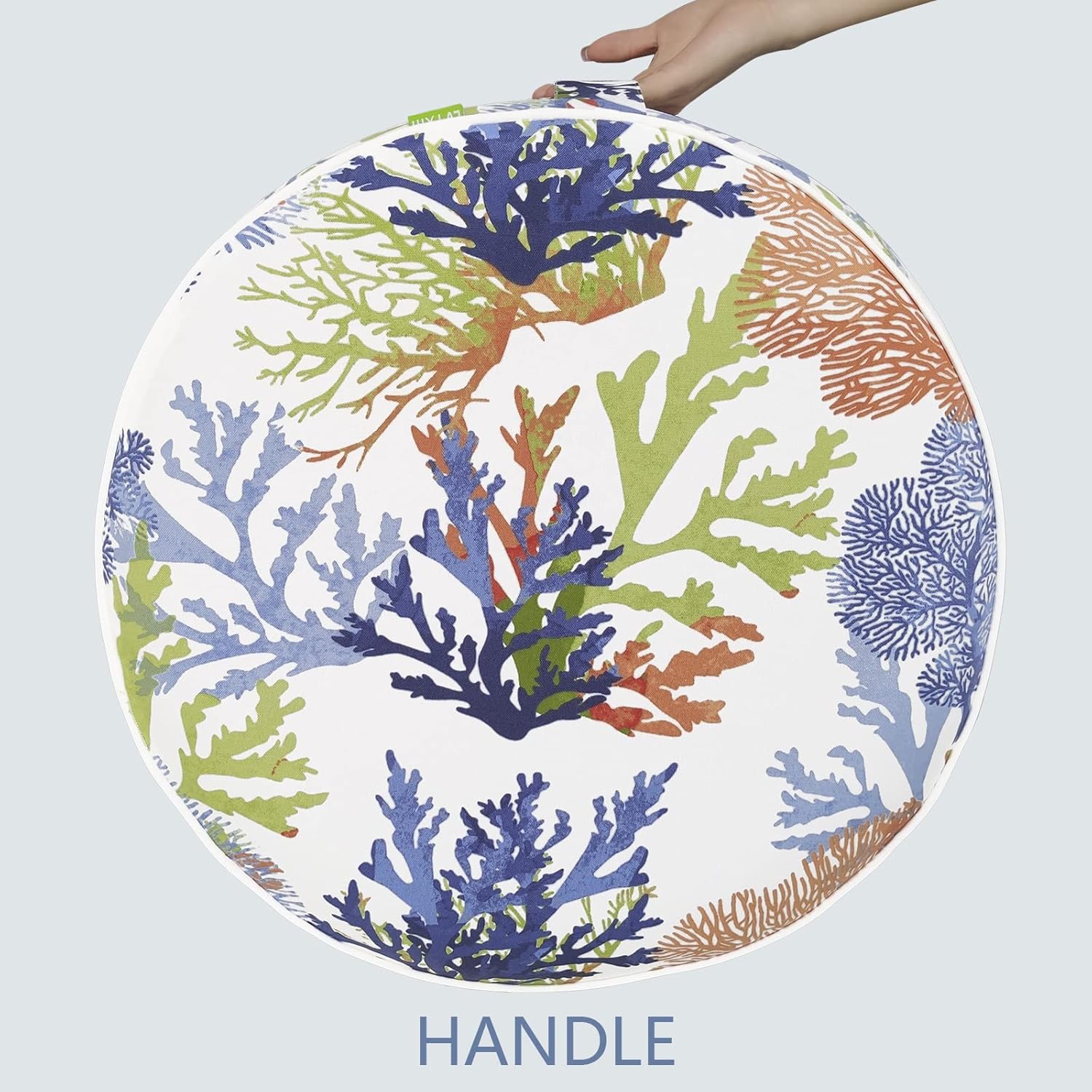 LVTXIII Outdoor Inflatable Ottoman, Patio Fade-Resistant Footrest Stool with Handle, Portable Round Ottoman Pouf for Patio Garden, Camping or Home Use, 21"x21"x9", Coral Multi