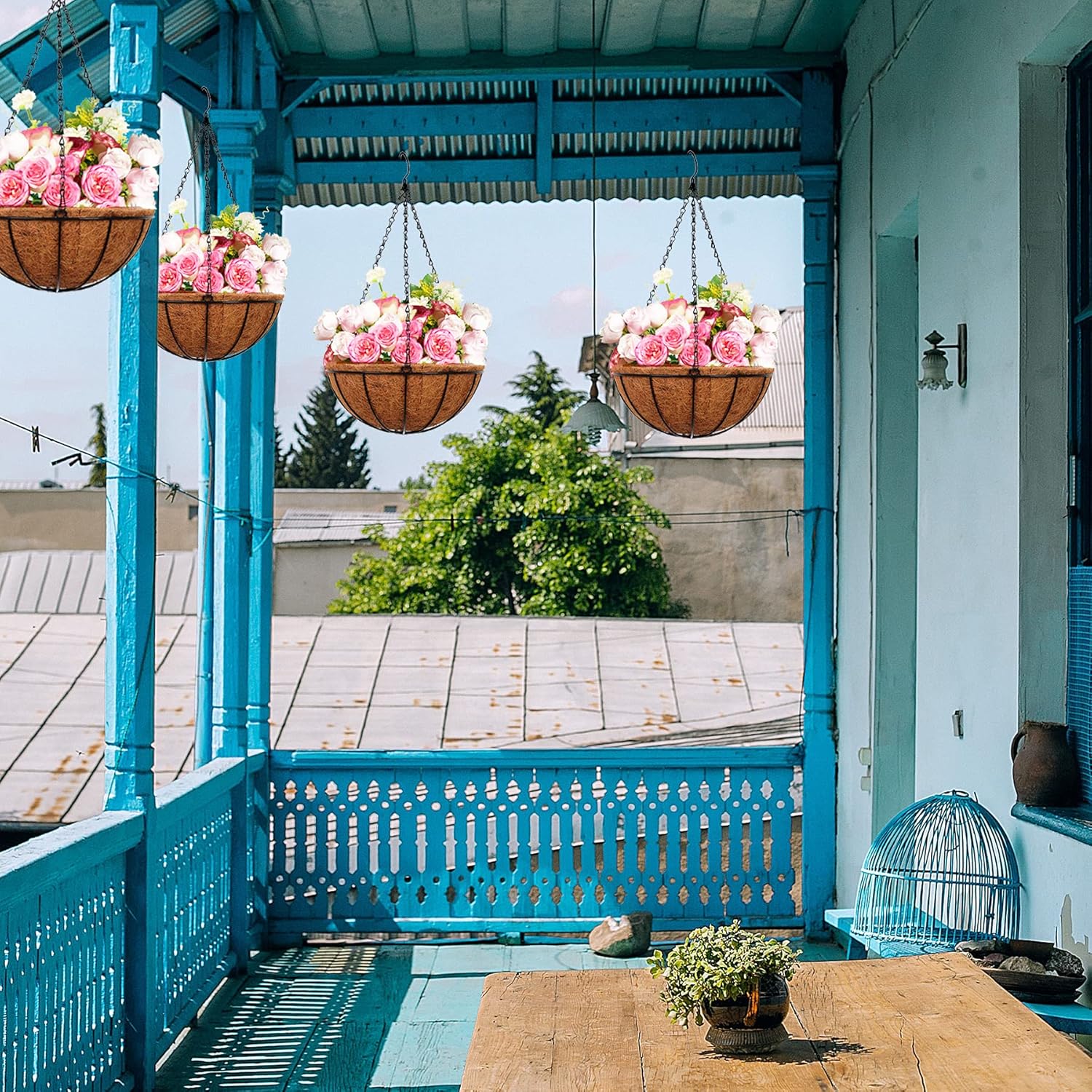 Hanging Planters Basket Outdoor Indoor(14 inch 4 Pack)-Coconut Coir Hanging Baskets for Plants Outdoor,Metal Wire Baskets with Coco Liner Window Box Planters, hanging Flower Pots For Railings…