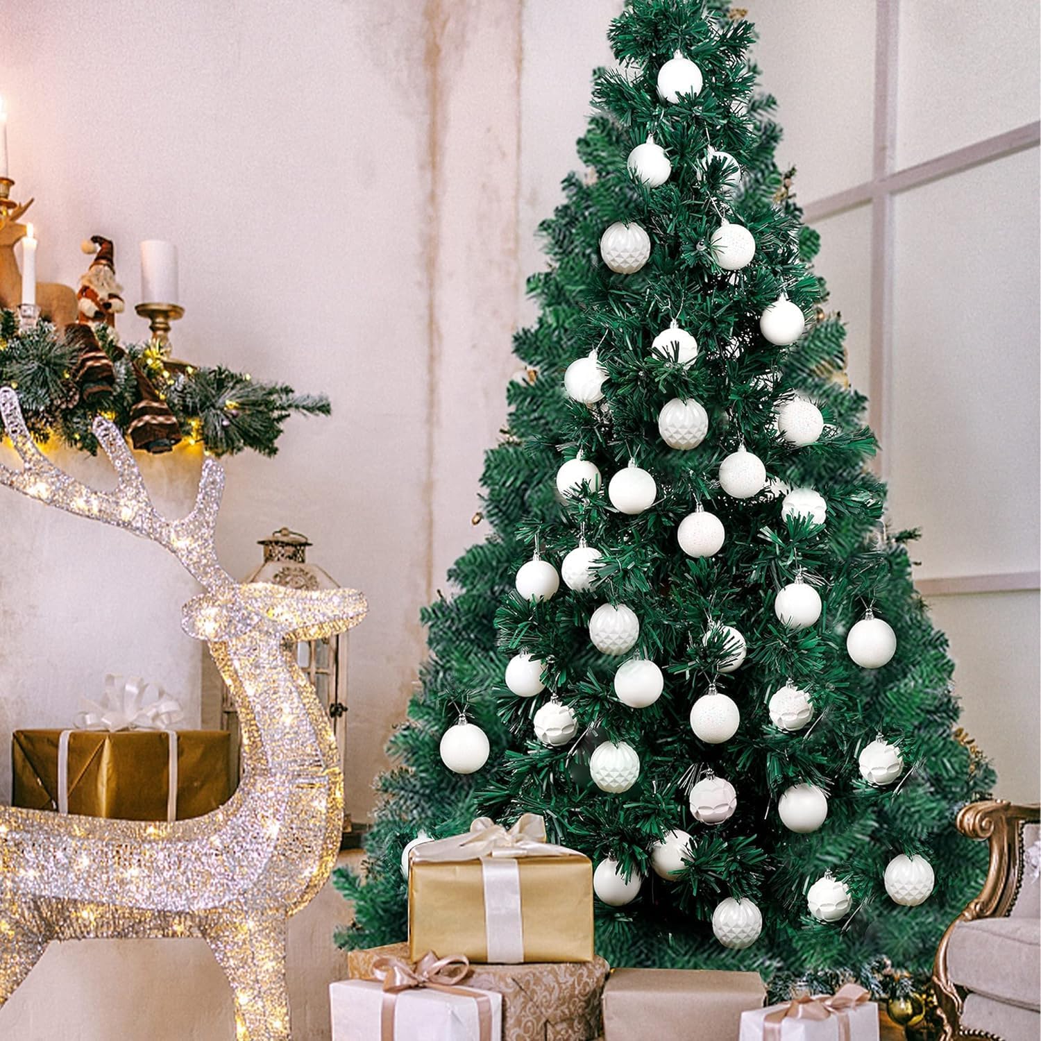 Lulu Home Christmas Ball Ornaments, 24 Ct 2.36" Pre-Strung Hanging Ornament Decorations, Xmas Shatterproof Plastic Balls for Holiday Party Wreath Garlands Trees, White