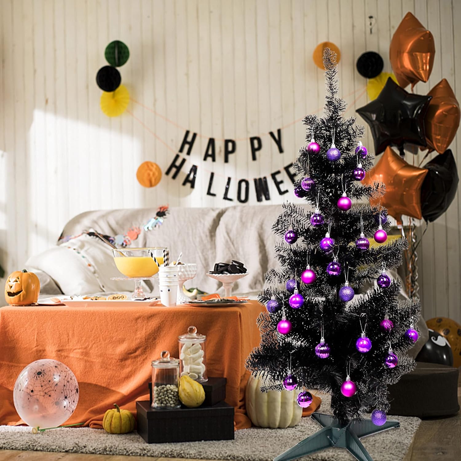 Lulu Home Halloween Hanging Ornaments, 34 Ct 1.57" Pre-Strung Plastic Balls, Shatterproof Barrel Packed Balls for Holiday Party Wreath Tabletop Tree Decorations, Dark Purple
