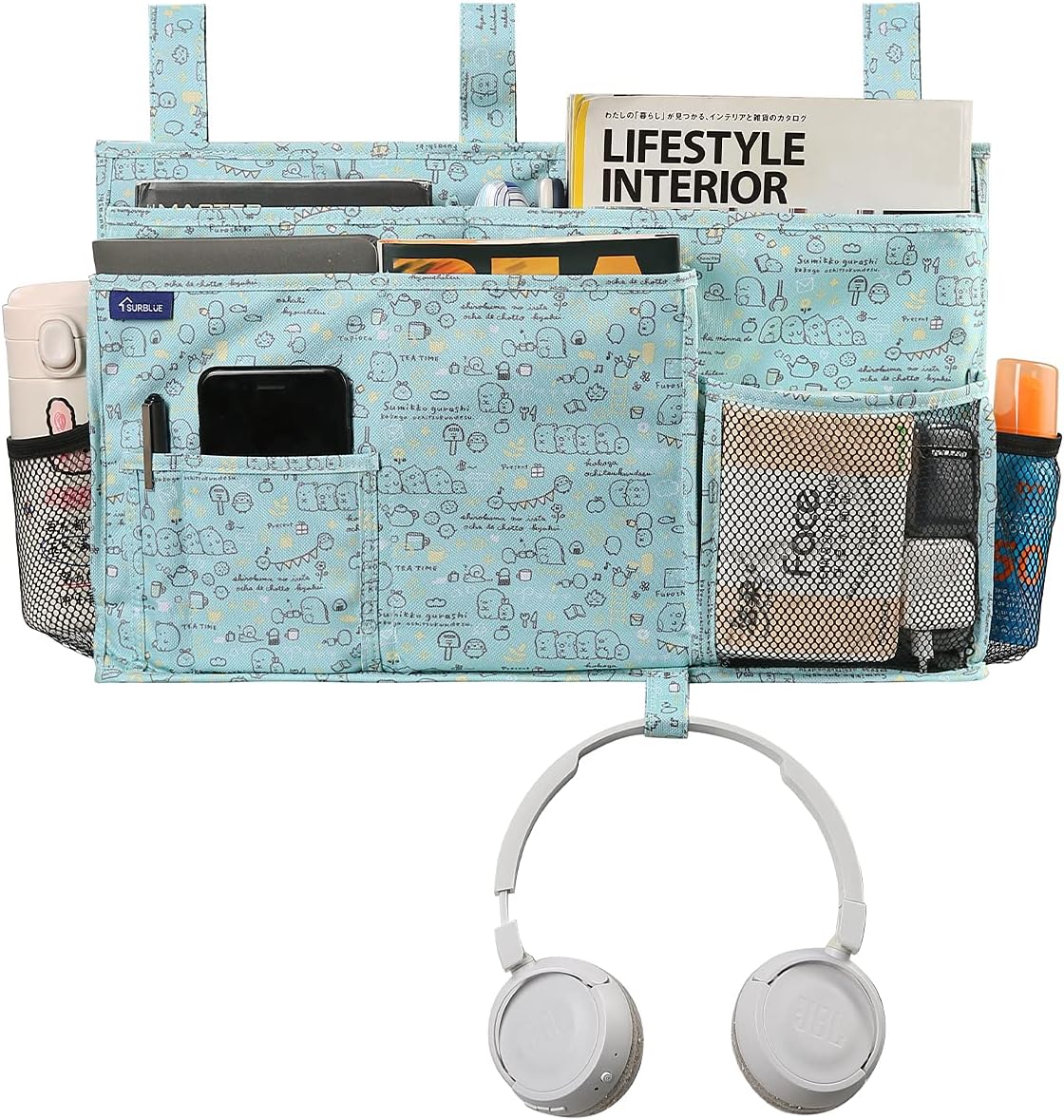 Surblue Bedside Caddy Hanging Bed Organizer Storage Bag Pocket for Bunk and Hospital Beds, College Dorm Rooms Baby Bed Rails, Camp 8 Pockets, (Large, Cartoon)
