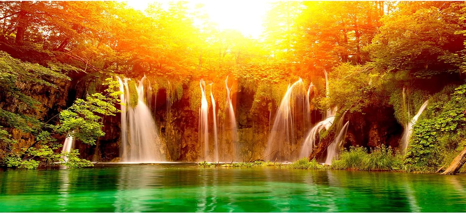 artgeist Wall Mural Waterfall 216x98 in - XXL Non-Woven Corner Wallpaper Fleece Angle Wall Decor Photo Print Picture Image Design Modern Nature Lake Sun Forest Landscape c-B-0475-a-a