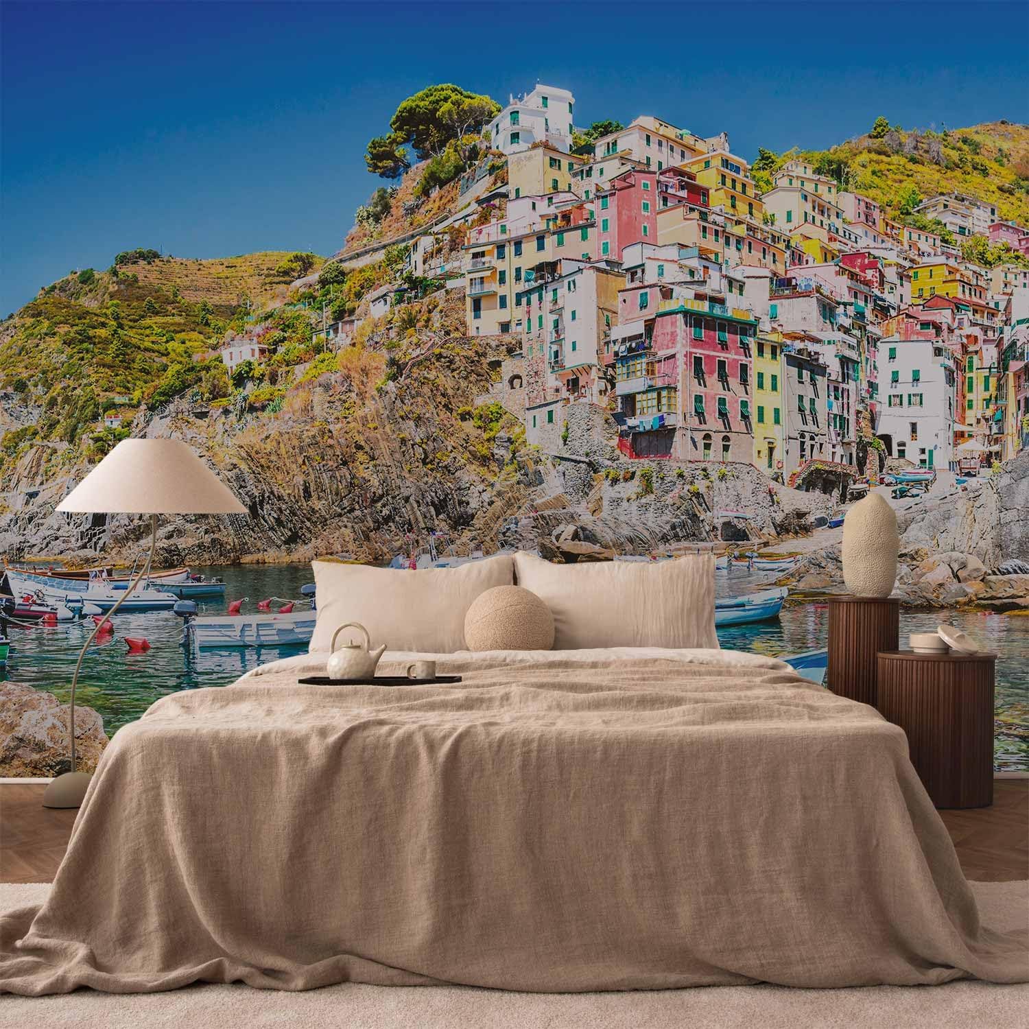 artgeist Wall Mural Architecture 216x98 in - XXL Non-Woven Corner Wallpaper Fleece Angle Wall Decor Photo Print Picture Image Design Modern City Sea Boat Like Painted d-B-0296-a-a