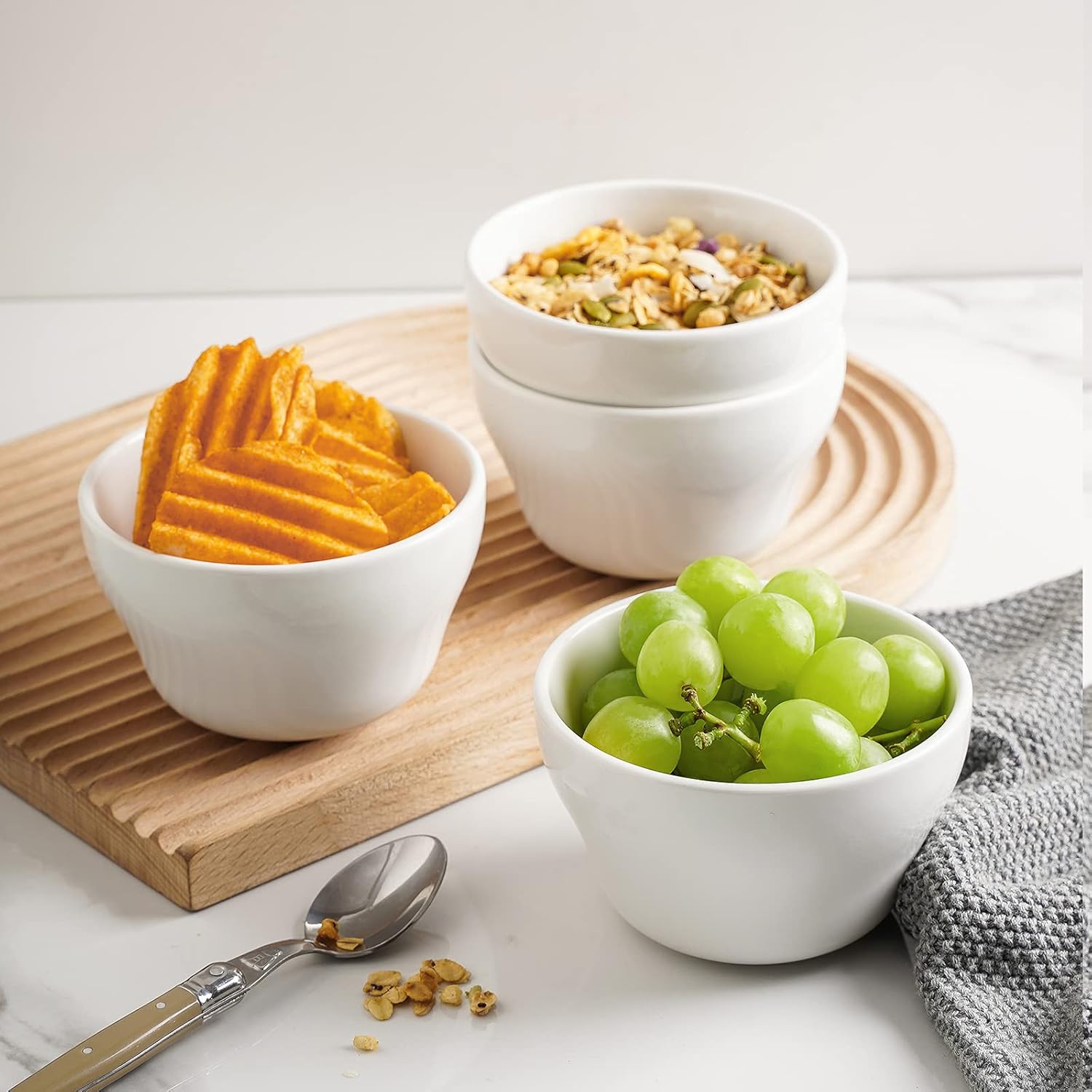 Selamica Ceramic Small Bowls Dessert Bowls 8oz Bouillon Cups for Dessert Soup Dipping Sauce Coffee Cupping Microwave and Dishwasher Safe- Set of 6(White)