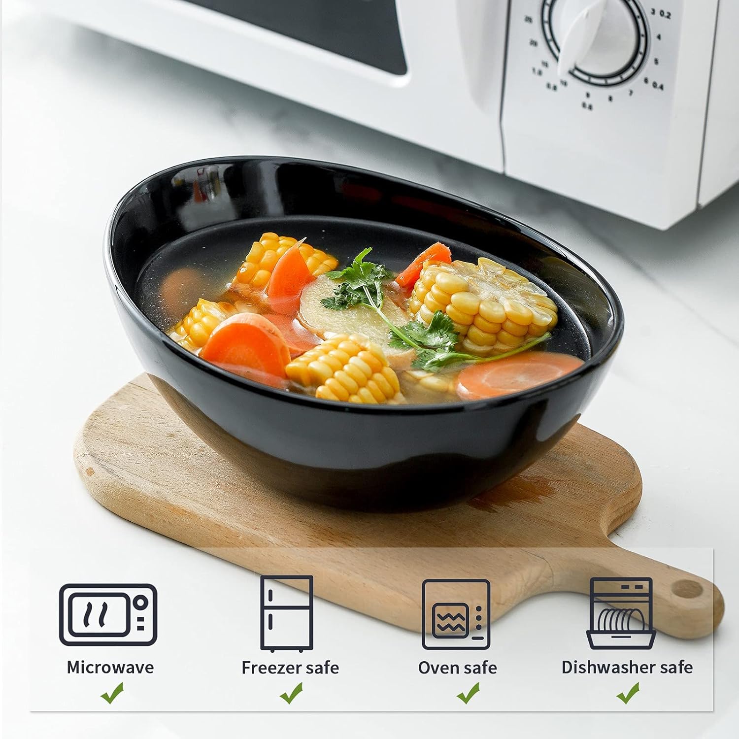 - HEALTHY AND DURABLE PORCELAIN BOWLS: This porcelain bowls set are constructed of LEAD-FREE porcelain, which features healthy and sturdy for long-lasting daily use. Glossy Black serving dishes are safe for microwave, oven, dishwasher and freezer.