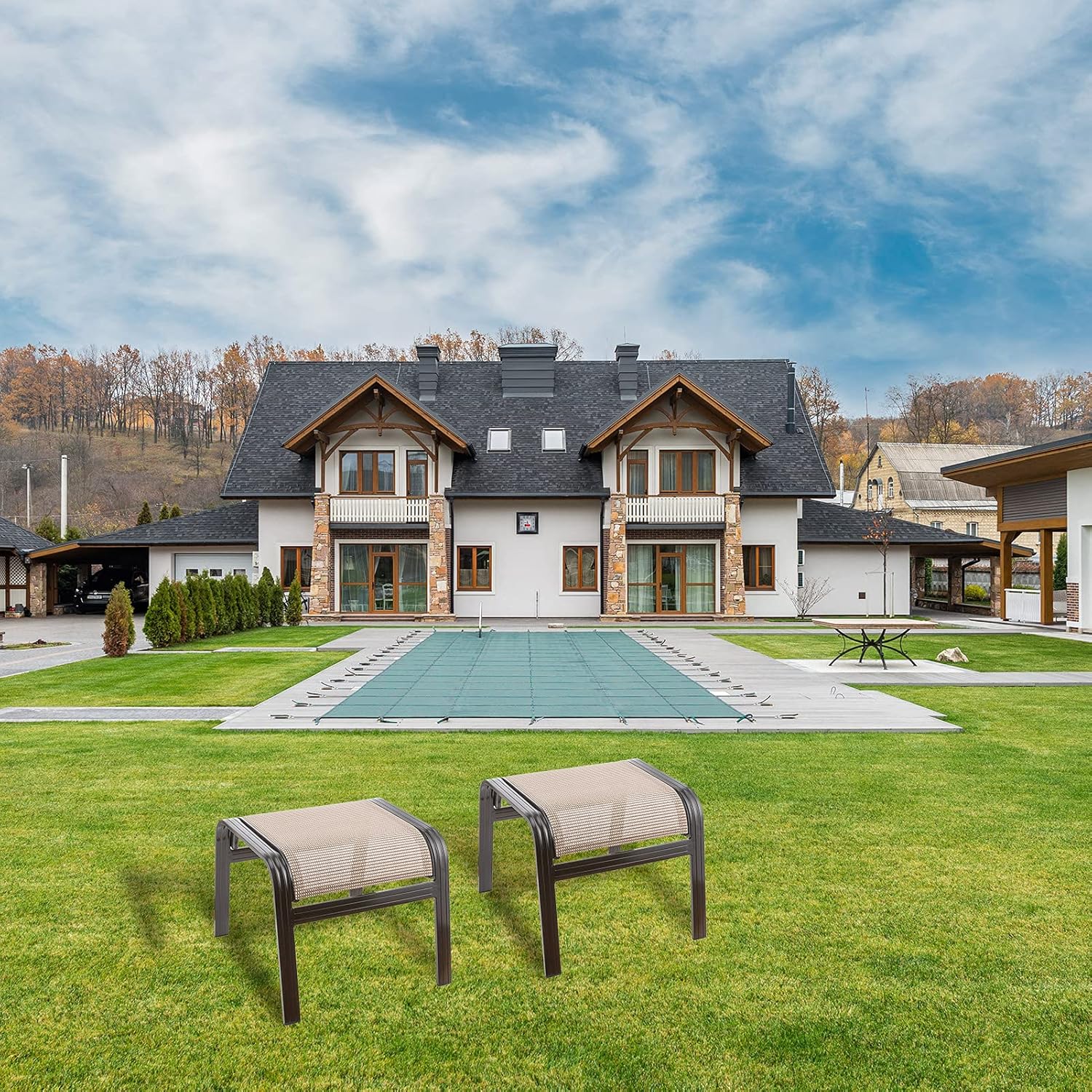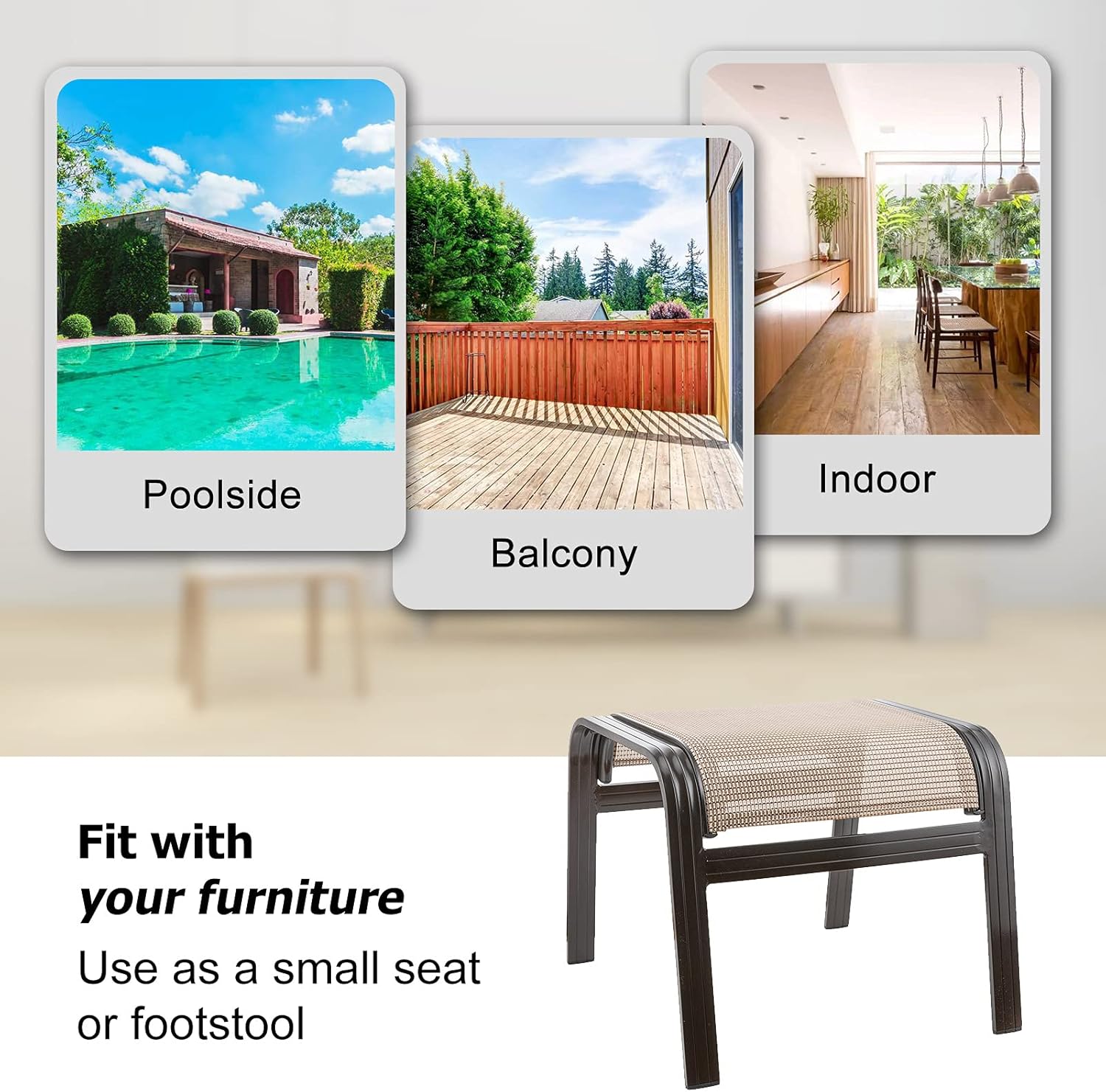 - With the concise design and classic patio appearance, the ottoman can complement with any daily occasions. It can be used anywhere you want, such as courtyards, lawns, gardens, balconies, swimming pools, porches, and indoors.These ottomans will suit you really well with your other furniture.