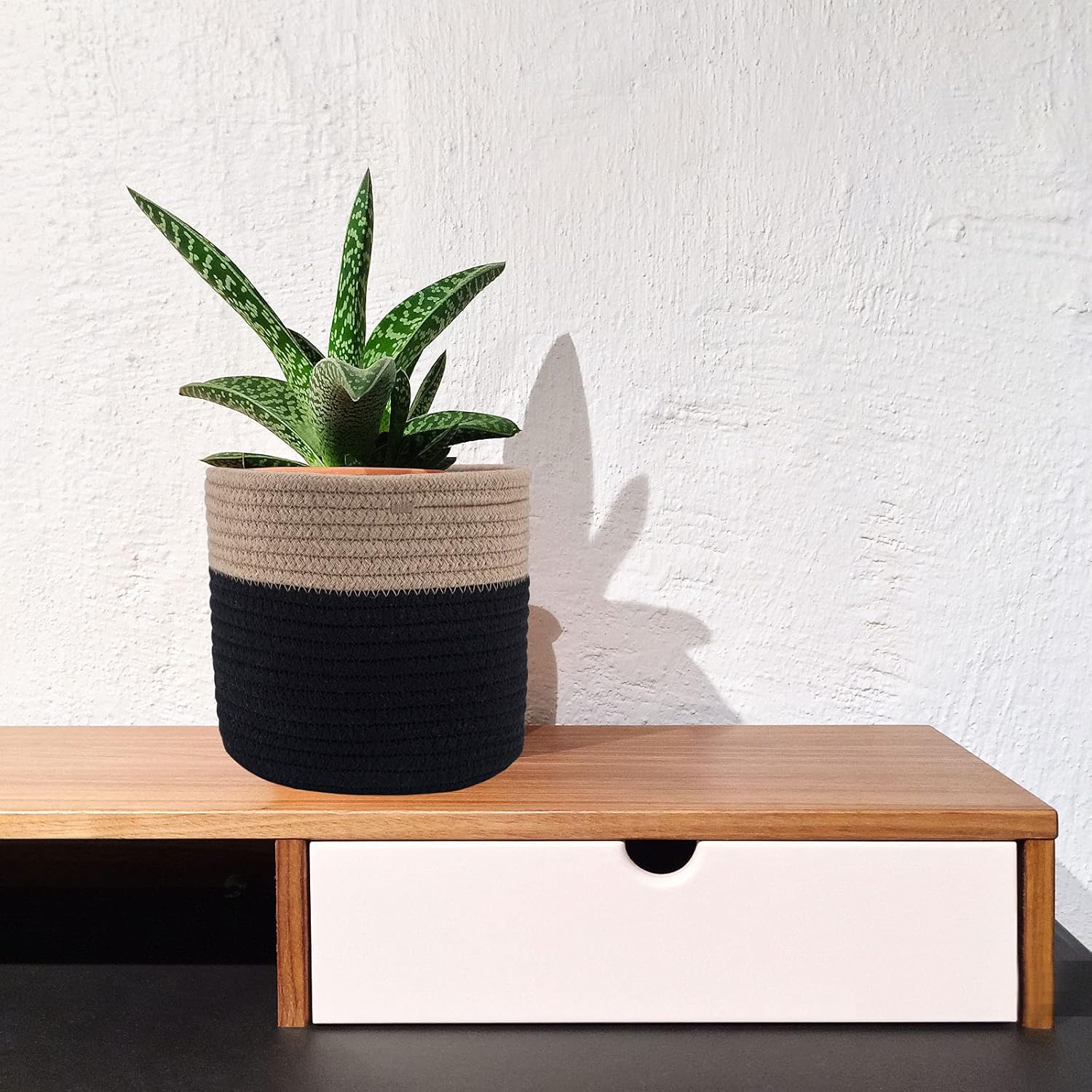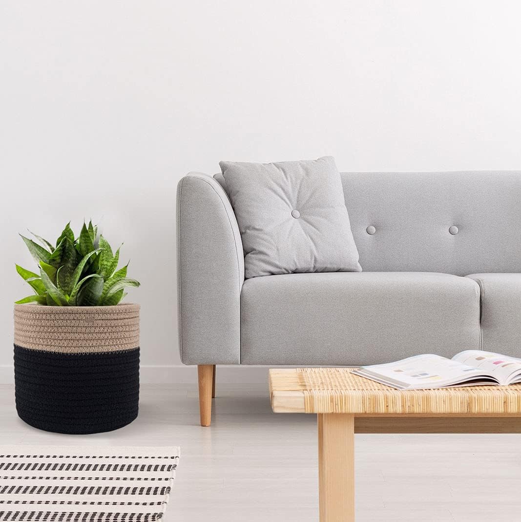 Woven Cotton Rope Plant Basket for 6" Flower Pot Floor Indoor Planters Flower Pot,Home Decor Storage Organizer H6 3/4" x W6 1/2" Black&Brown