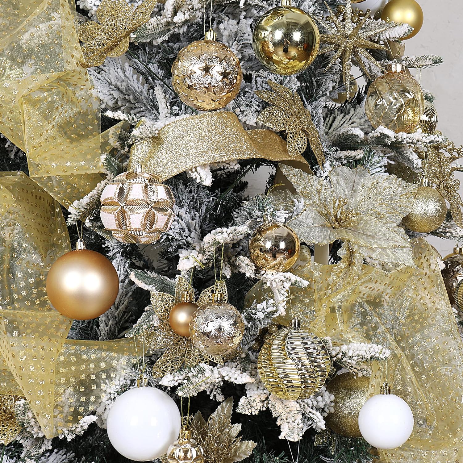 87ct Christmas Ball Ornaments Set Shatterproof Seasonal Hanging Decorations with Reusable Hand-held Gift Package for Xmas Tree Holiday Party and Home Decor, Gold