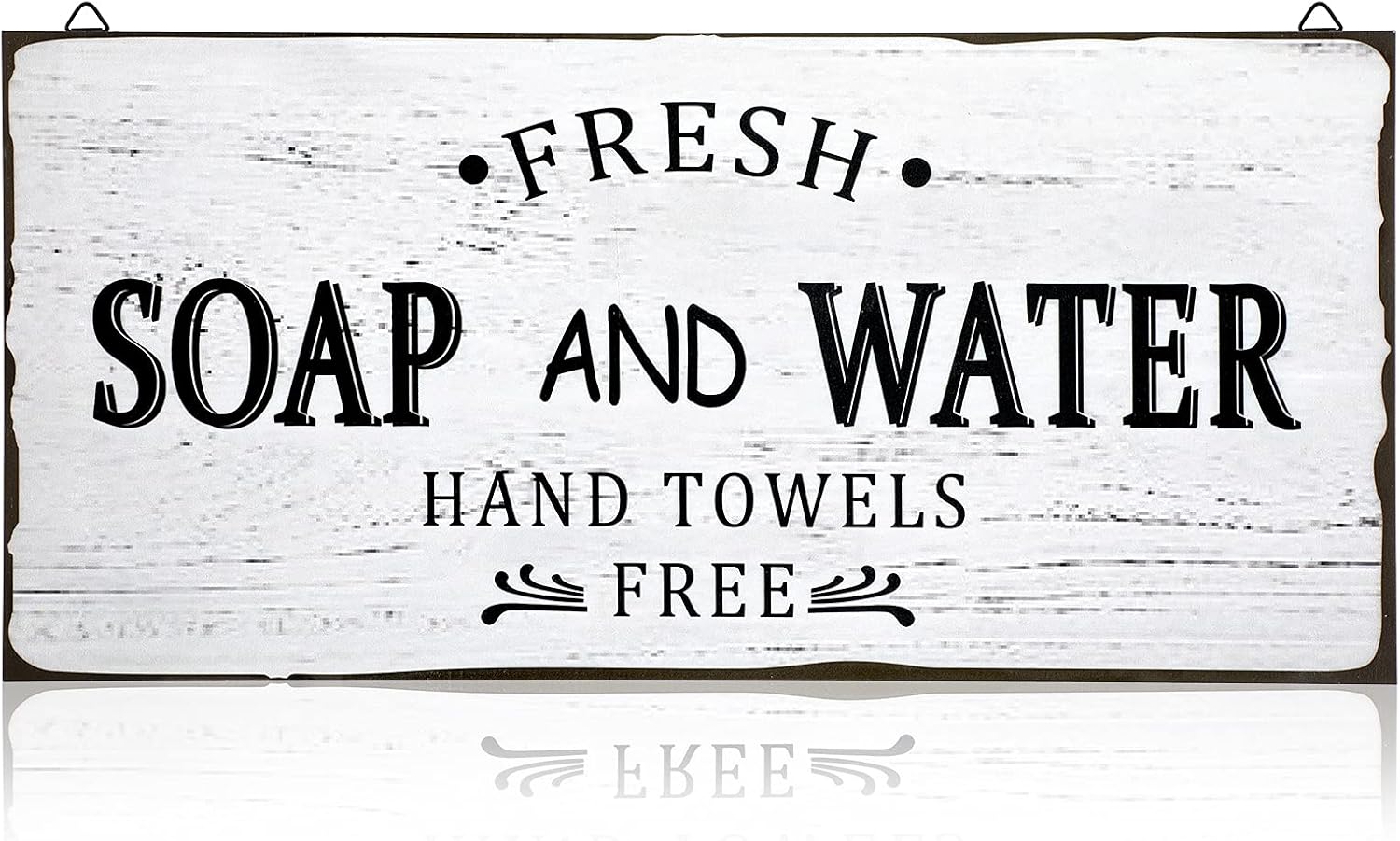 Jetec Farmhouse Bathroom Decor, Fresh Soap and Water Sign Vintage Bathroom Wood Plaque Rustic Wall Decor for Wall Art Decoration Restroom(Classic)
