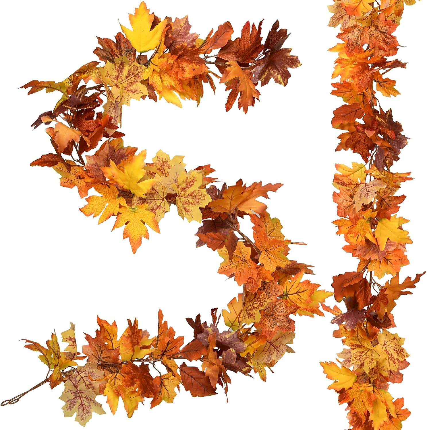 Artiflair 2 Pack Fall Maple Leaf Garland, 5.9Feet/Strand Hanging Vine Artificial Autumn Foliage Thanksgiving Decor for Home Wedding Fireplace Party Christmas
