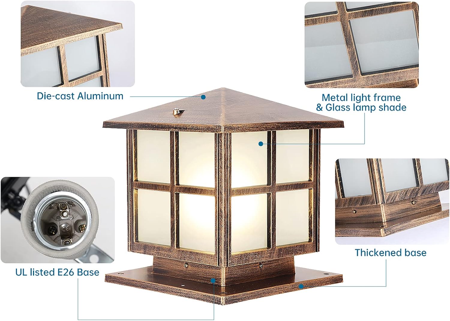 - ☀ VARIOUS BULBS COMPATIBLE: This outdoor pillar lights fixture Uses one E26 medium base Edison bulb(60W Max, not included).</br>