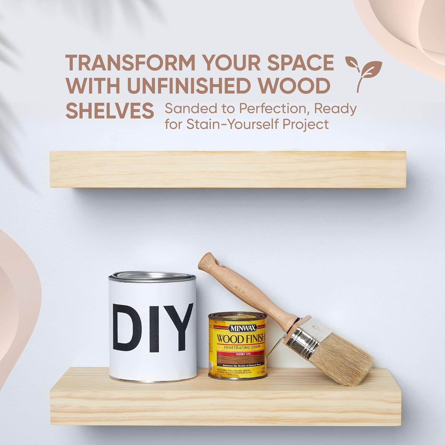 Homeforia Wood Floating Shelf 16 inch, High End Solid Natural Wood 16inch Floating Shelves for Wall Mounted, Unfinished Wooden Small Floating Shelves, Heavy Duty Bracket, 16 X 6.5 X 1.75 in, Set of 2