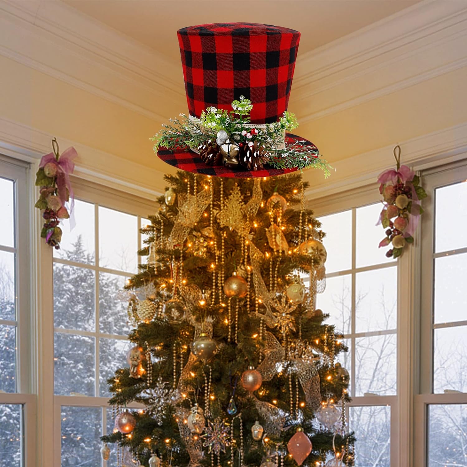 - 🎅 Multi-Use Xmas Decor: The top hat can not only be used as tree topper, also can be a beautiful hat to decorate your snowman in winter. You can display the hat in your room, kitchen, desk, office, fireplace as a holiday table centerpieces, which meshes well with other Christmas decorations.