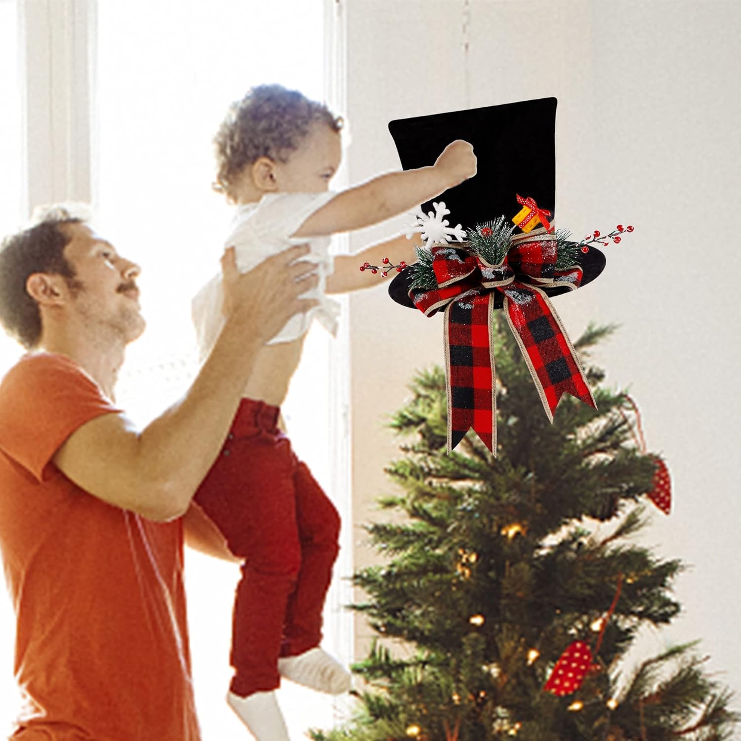 - 🎩 Christmas Tree Topper: Our velvet black top hat is a perfect partner for Christmas tree to add a nice touch to your Xmas decor. Designed with a buffalo plaid bow, the treetop hat will make your tree look more attractive.