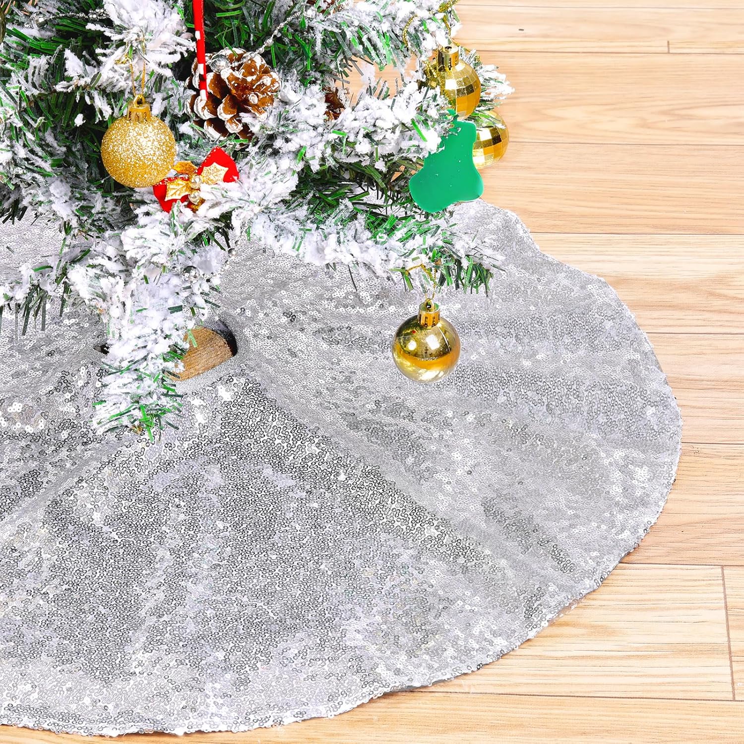 - Christmas Decorations: 24 Inch silver tree skirt is suitable for all kinds of Christmas trees, Perfect for Homes, Offices, Party, Schools, Shops, Garden, Bar, Hotel, Wedding, Outdoor, etc.