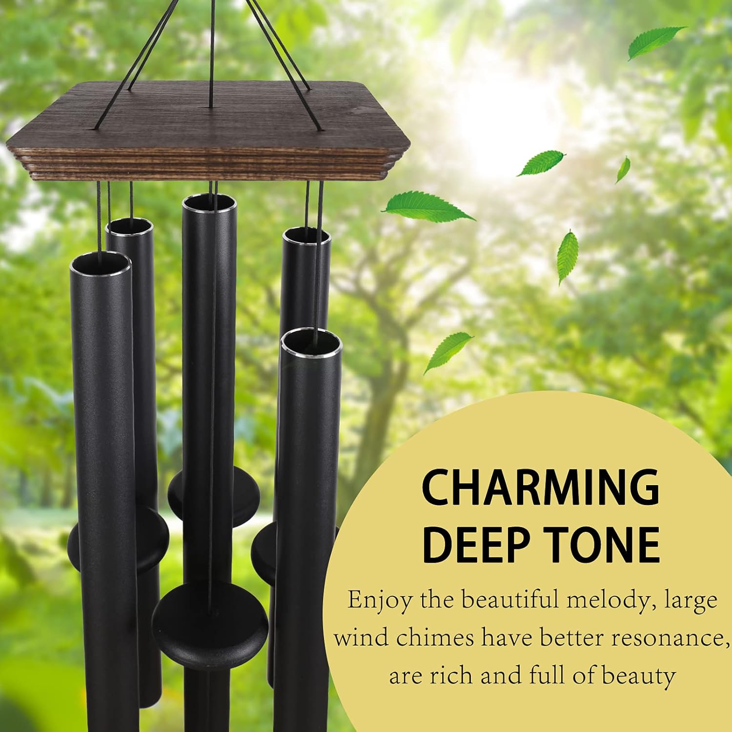 - Unique sound: Implication deep tone wind chimes have a nice medium to a lower frequency, each aluminum tube is precisely tuned to the pentatonic scale, Large wind chimes with heavy-duty aluminum tubes for a more melodious resonance, bring for you a soft and comfortable deep tone. Enjoy peaceful melodies that are Like church bells - deep tone, rich and full of beauty.