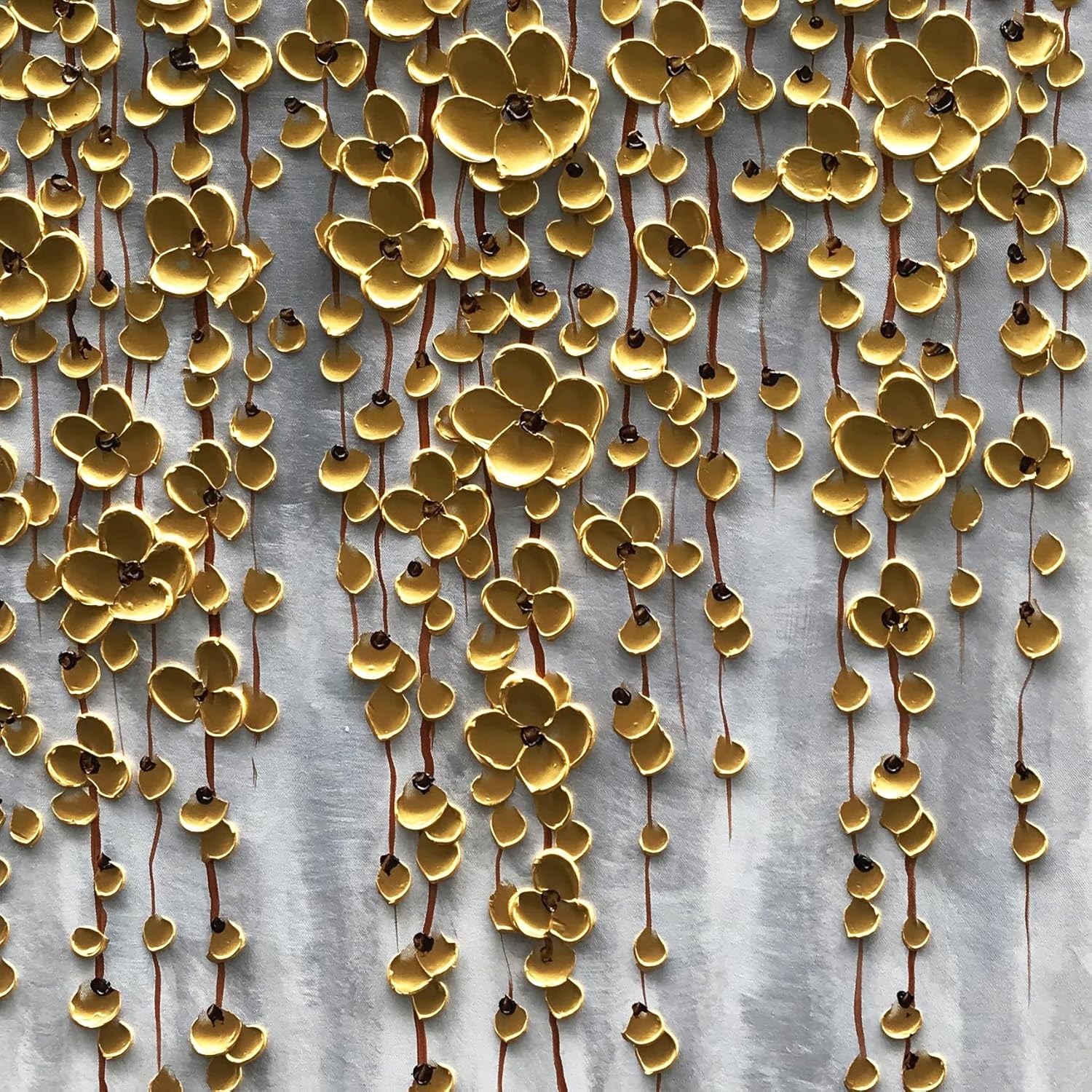 3D Vertical Abstract Canvas Oil Painting Wall Art, 116x57cm Golden Flower Painting Wall Art, Home Living Room Wall Decoration Abstract Painting Art