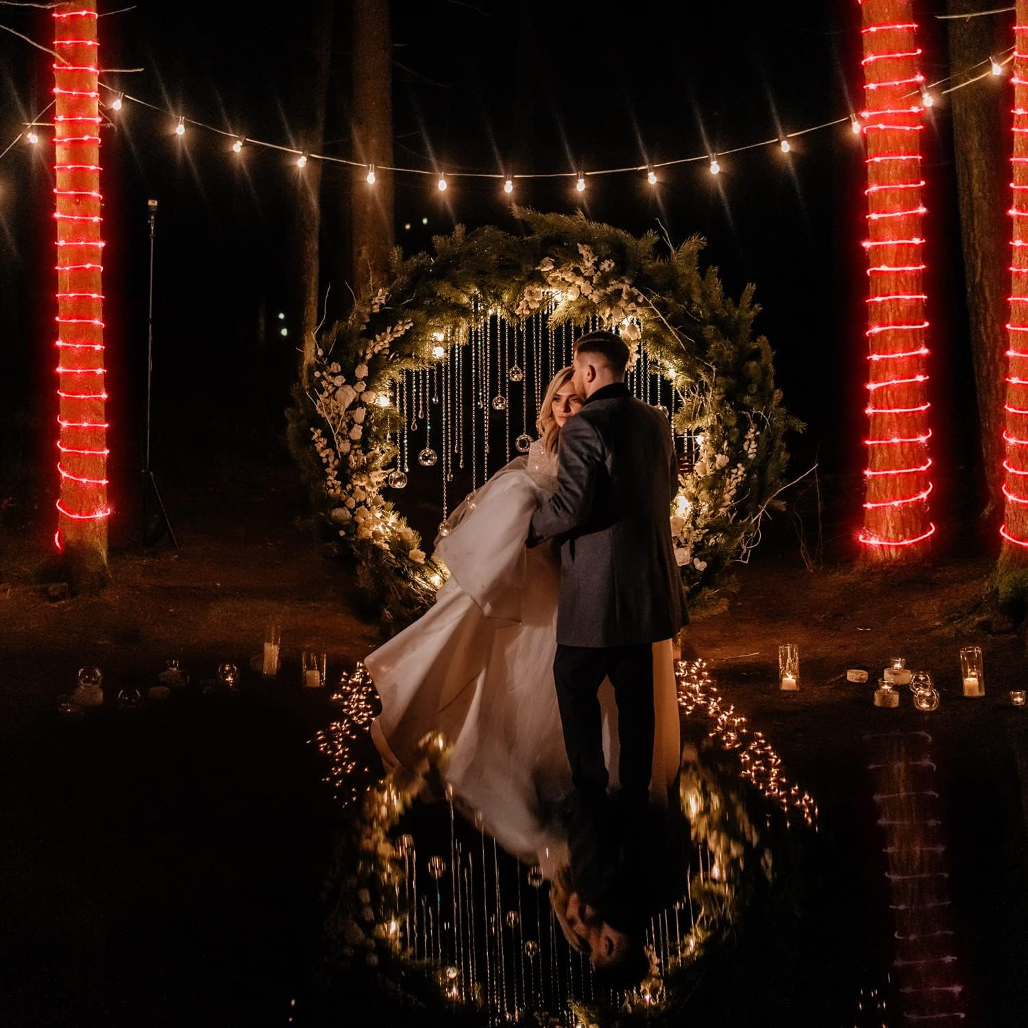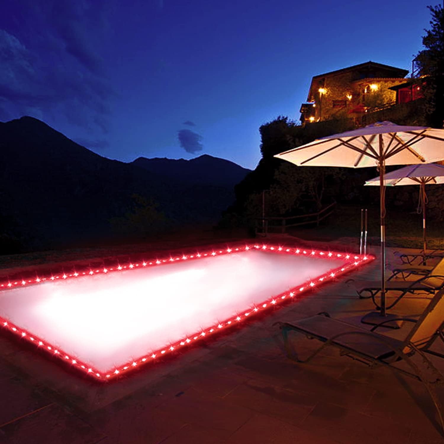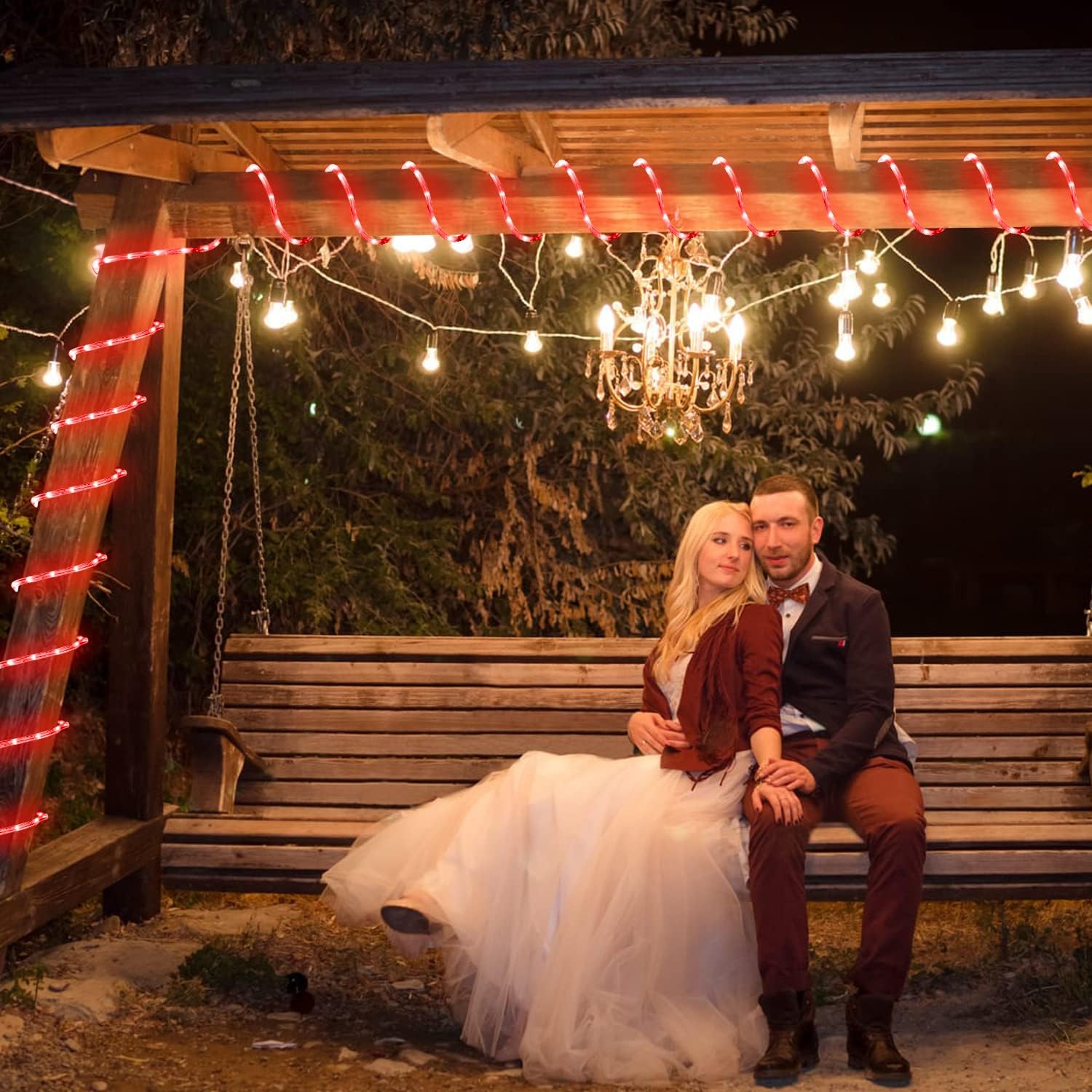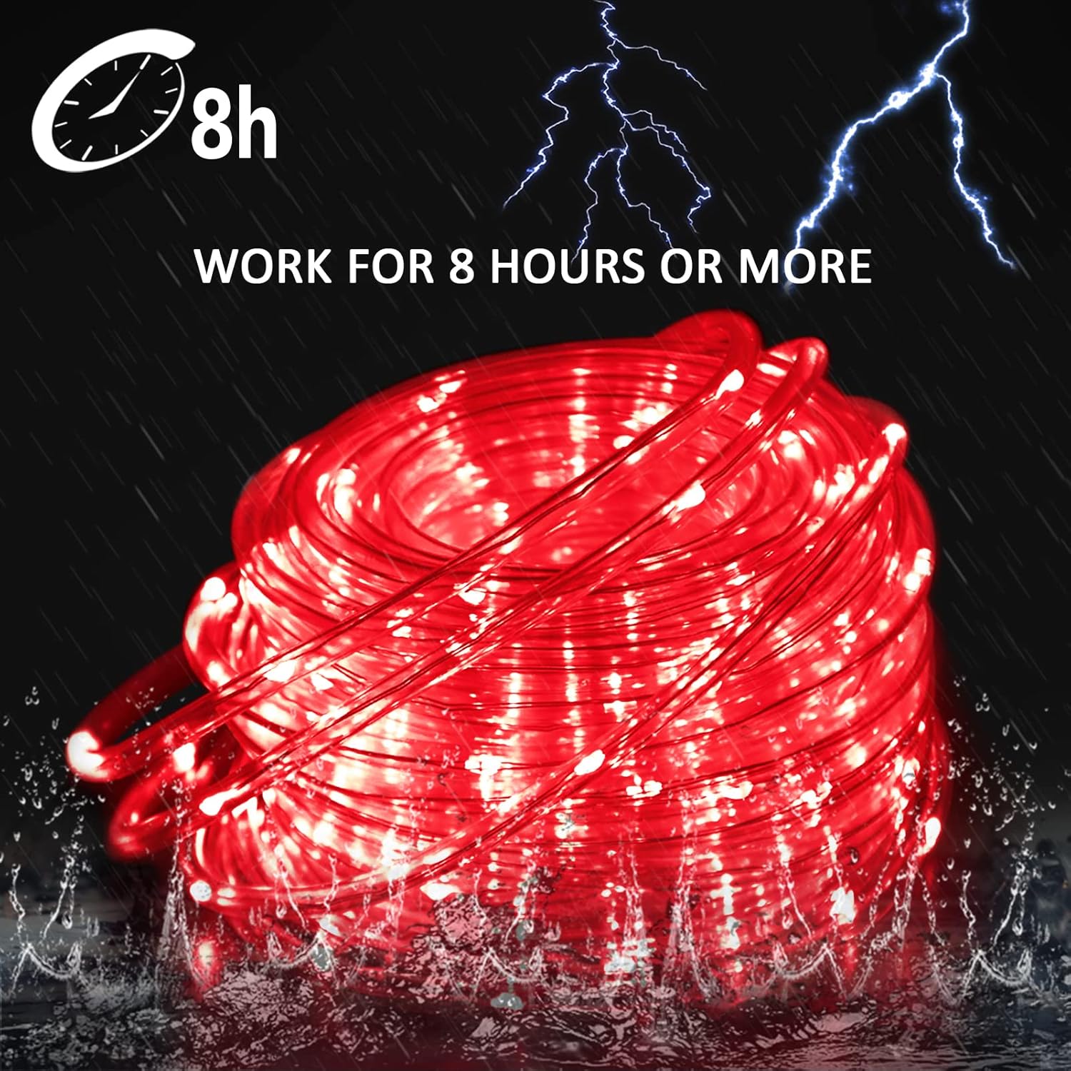 JMEXSUSS Solar Rope Lights, 2 Pack 100 LED 33ft 8 Modes Solar Rope Lights Outdoor Waterproof Red LED Christmas Light for Tent Gazebo, Trampoline, Walkway, Pool Decor(Red)