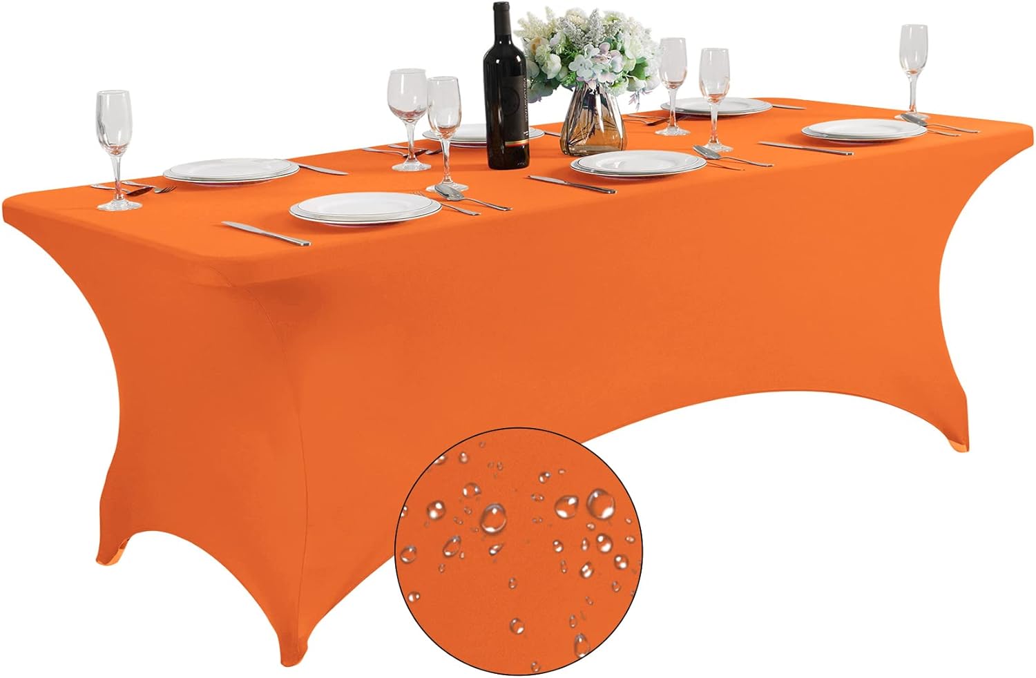 SuperO Waterproof Spandex Table Cover for 8FT Table Universal Fitted Stretch Tablecloth for Party, Banquet, Wedding and Events-Orange