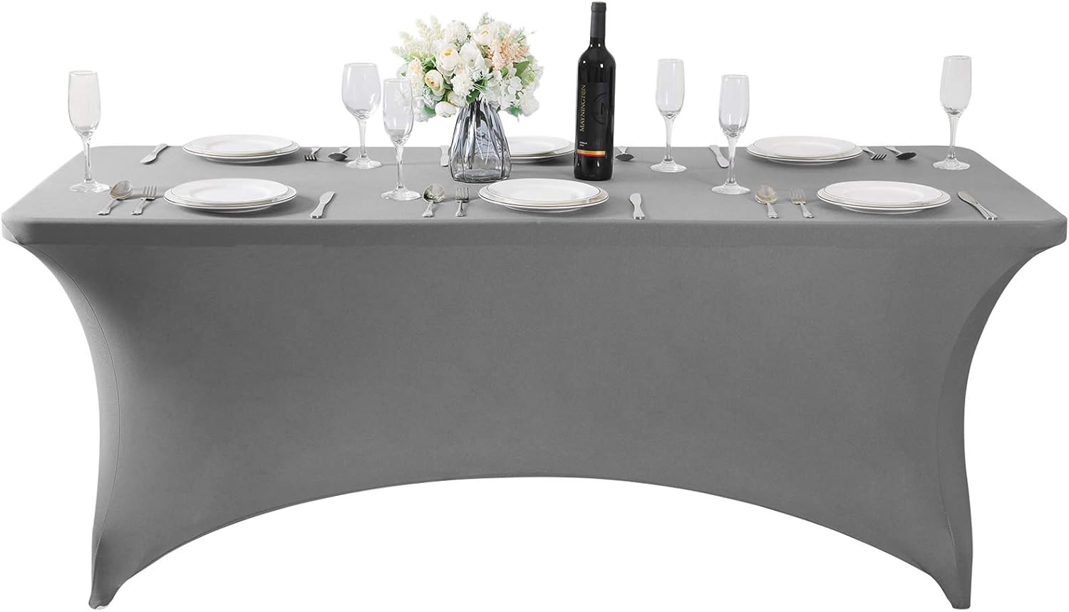 SuperO Waterproof Spandex Table Cover for 6FT Table Universal Fitted Stretch Tablecloth for Party, Banquet, Wedding and Events-Gray