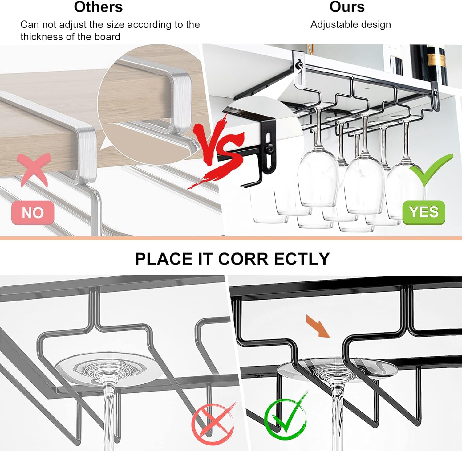 - 【Space Saving】Compact wine glass rack can be hang under any kitchen cabinets, save so space while displaying your glasses! Adds elegance taste to your home or bar's decor, as well as a best gift for wine lovers.