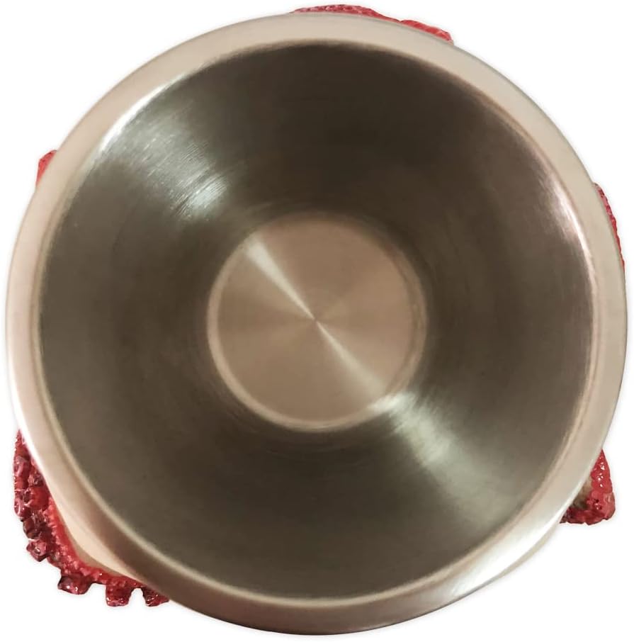 - Skull Goblet - The inner cup is made of 304 stainless steel, the outer part is made of high quality cold cast resin, food grade, durable and hygienic Measures approximately 7.5 inch tall, 4 inch diameter.Goblet capacity is 7 ounces