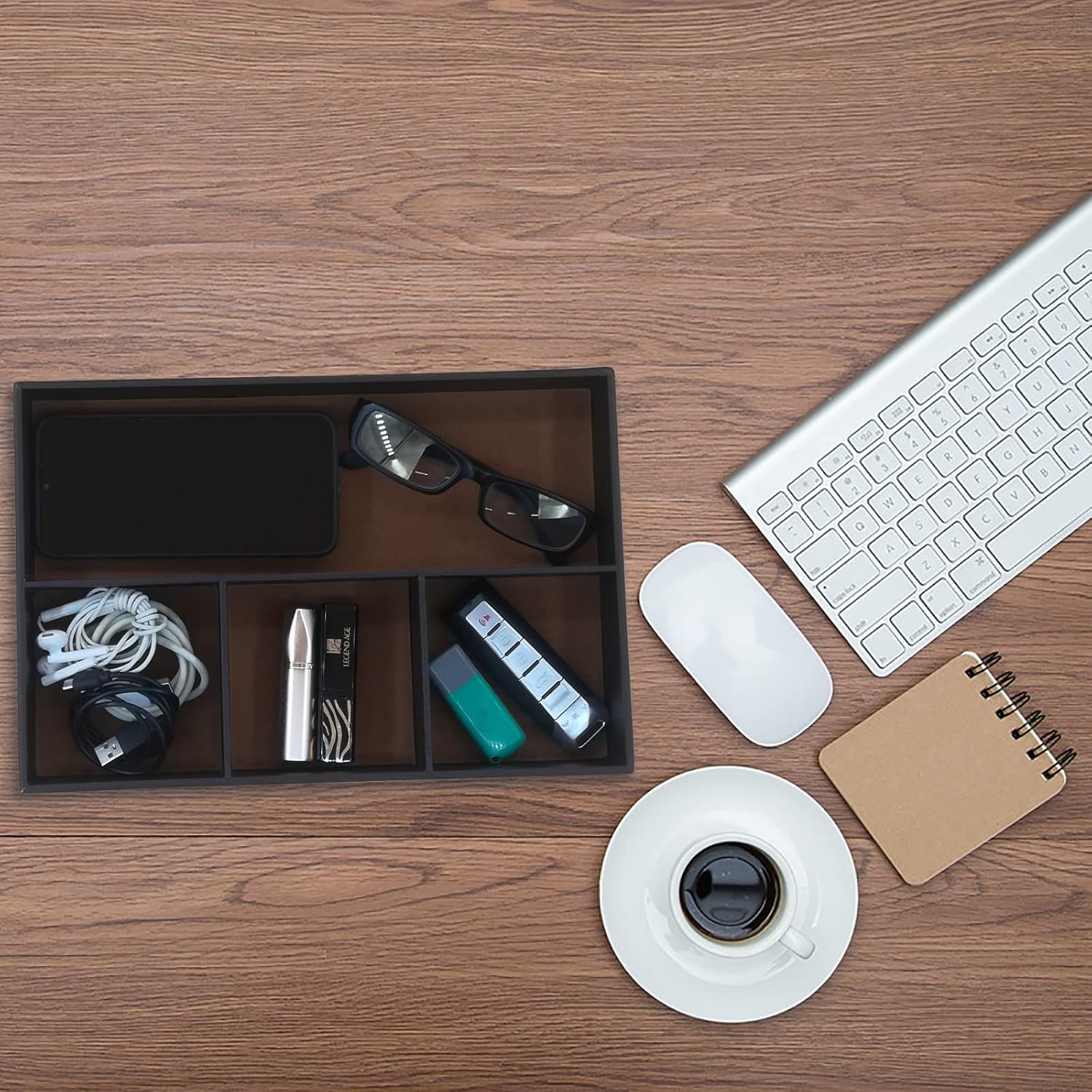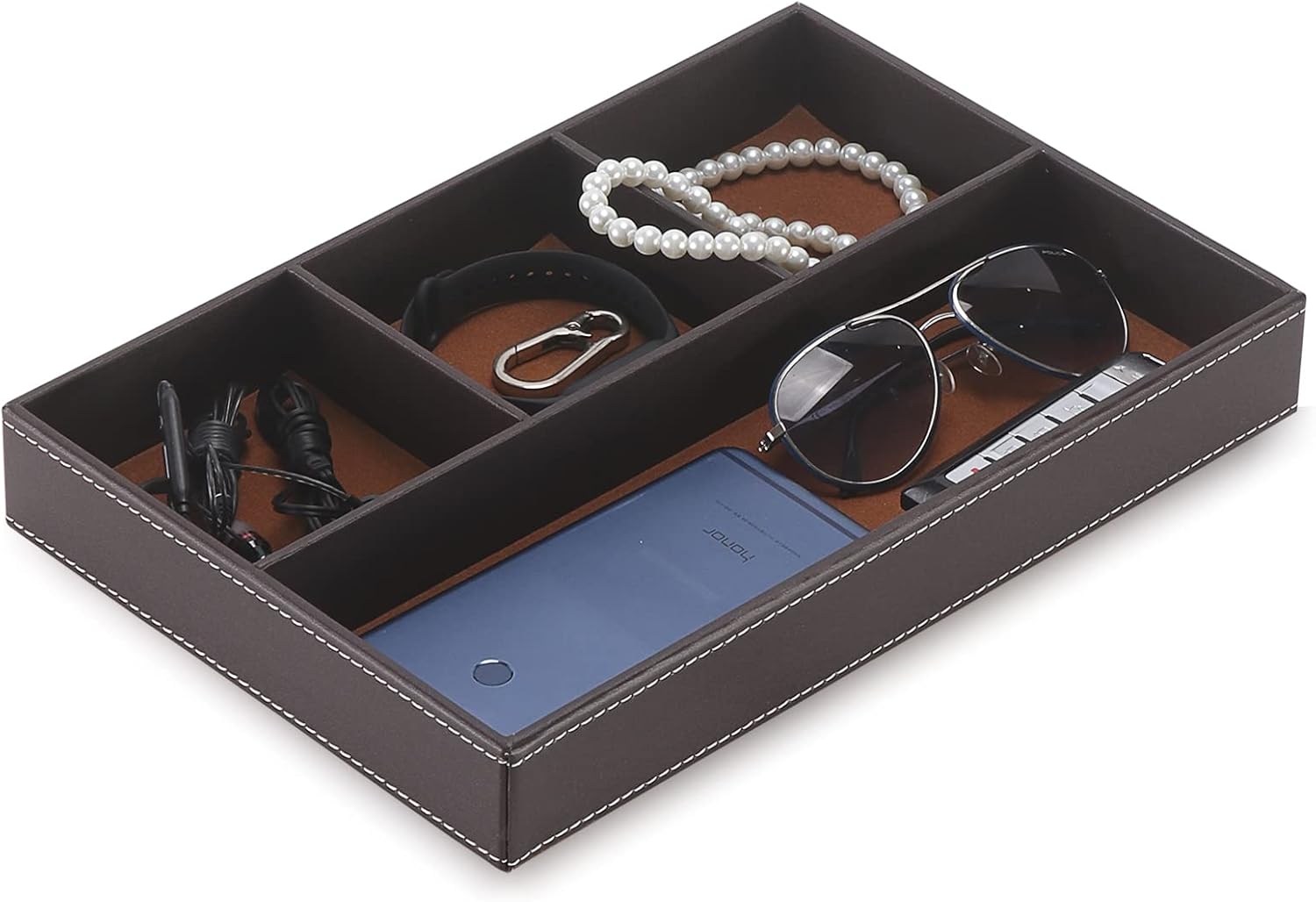 - [Storage tray] This 4-compartment tray can store mobile phones, watches, glasses, money, wallets, coins, keys, jewelry, etc., suitable for bedrooms, offices, halls, dressing tables, bedside tables, desktops, etc.