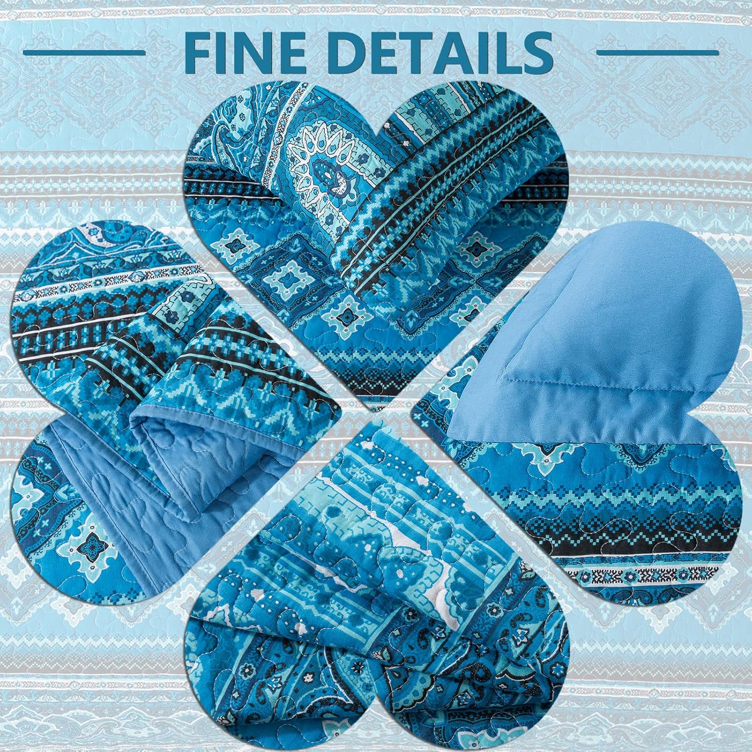 VAPUTAR Cotton Quilt Bedding Set - 3 Pieces, Boho King Size Quilts, Lightweight Reversible Coverlets Bedspreads for Farmhouse Bedroom (Blue)