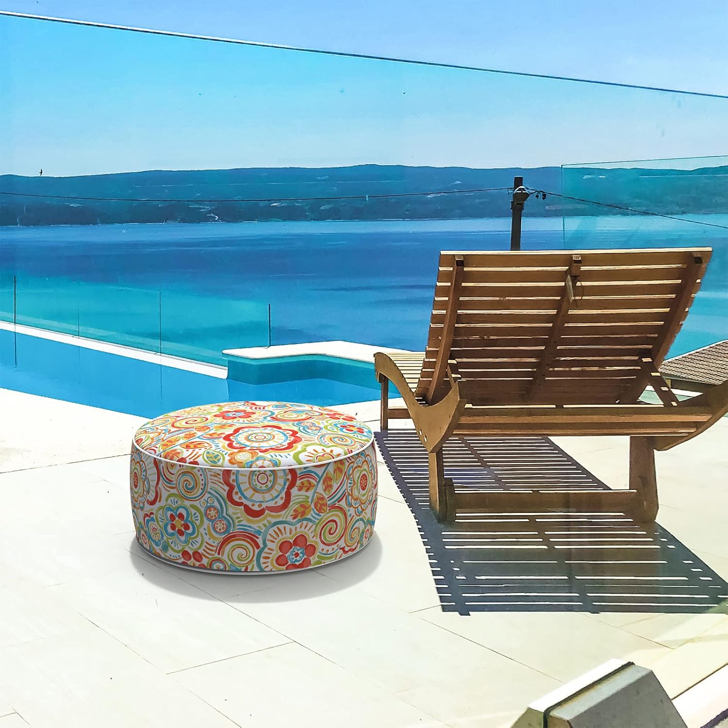LVTXIII Indoor/Outdoor Inflatable Ottoman, All Weather Round Footrest Stool D21”x H9”, Portable for Patio Garden Camping or Home-Flower Multi