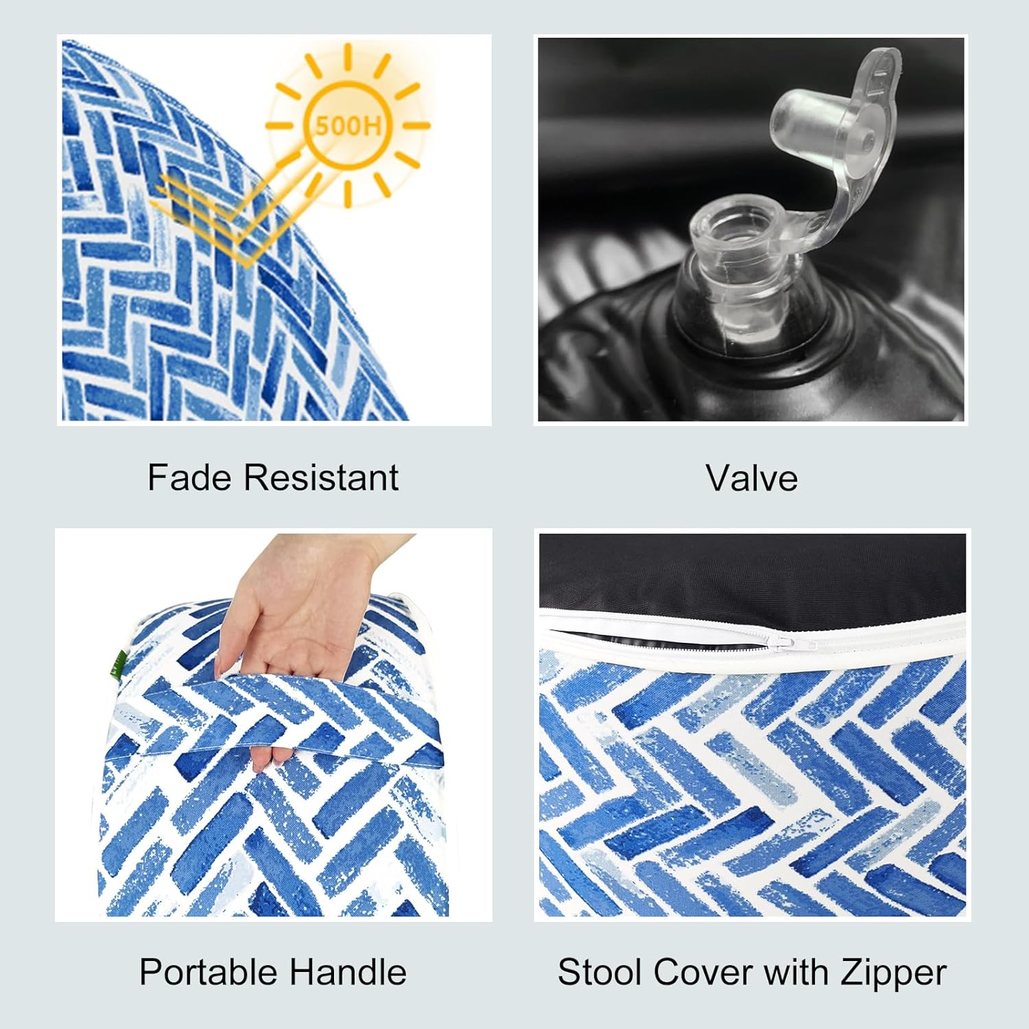 LVTXIII Indoor/Outdoor Inflatable Ottoman, All Weather Round Footrest Stool D21”x H9”, Portable for Patio Garden Camping or Home-Blue Bricks