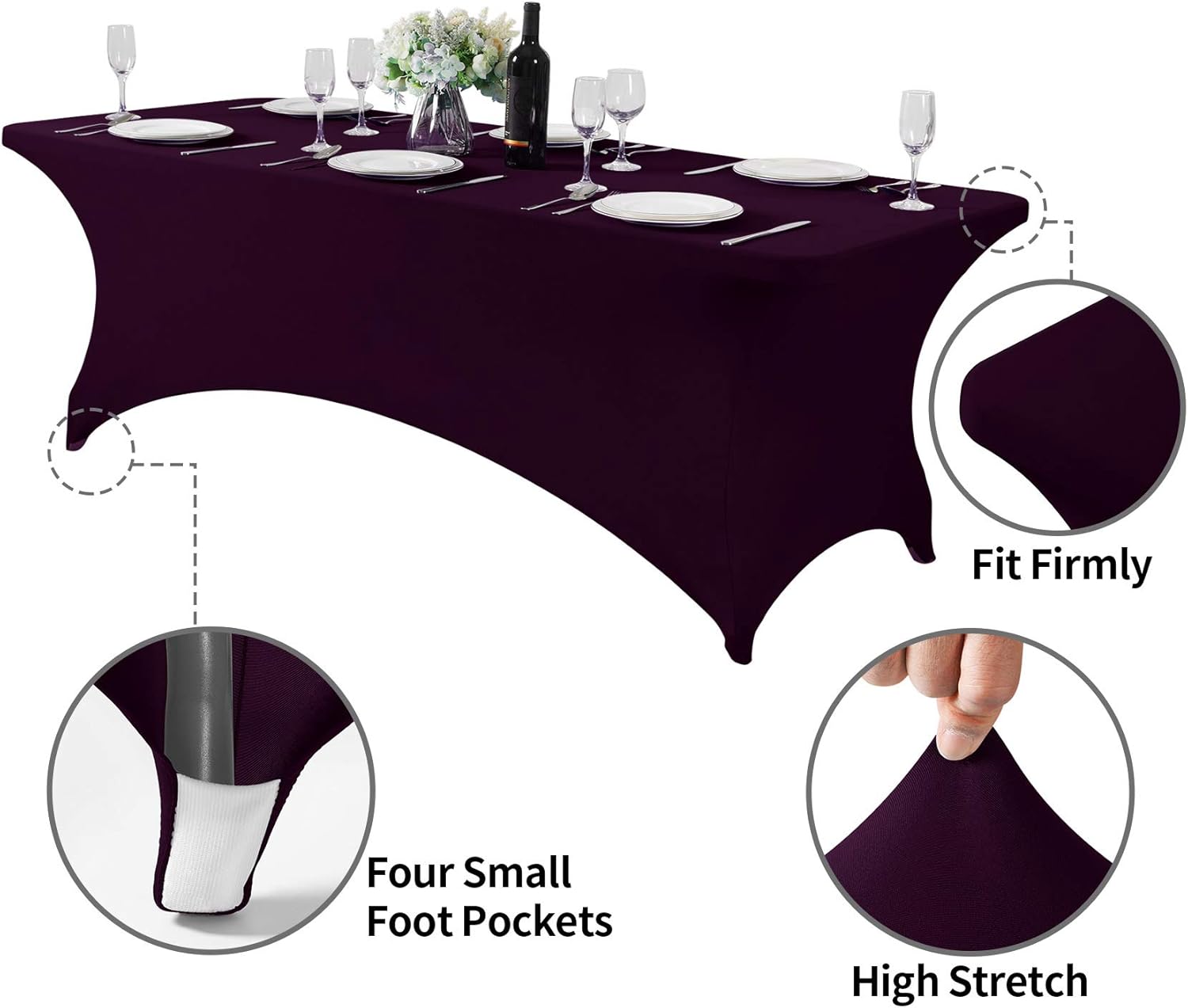 2Pack Spandex Table Cover for 8FT or 4ft or 6ft Table Universal Fitted Stretch Tablecloth for Party, Banquet, Wedding and Events-Eggplant