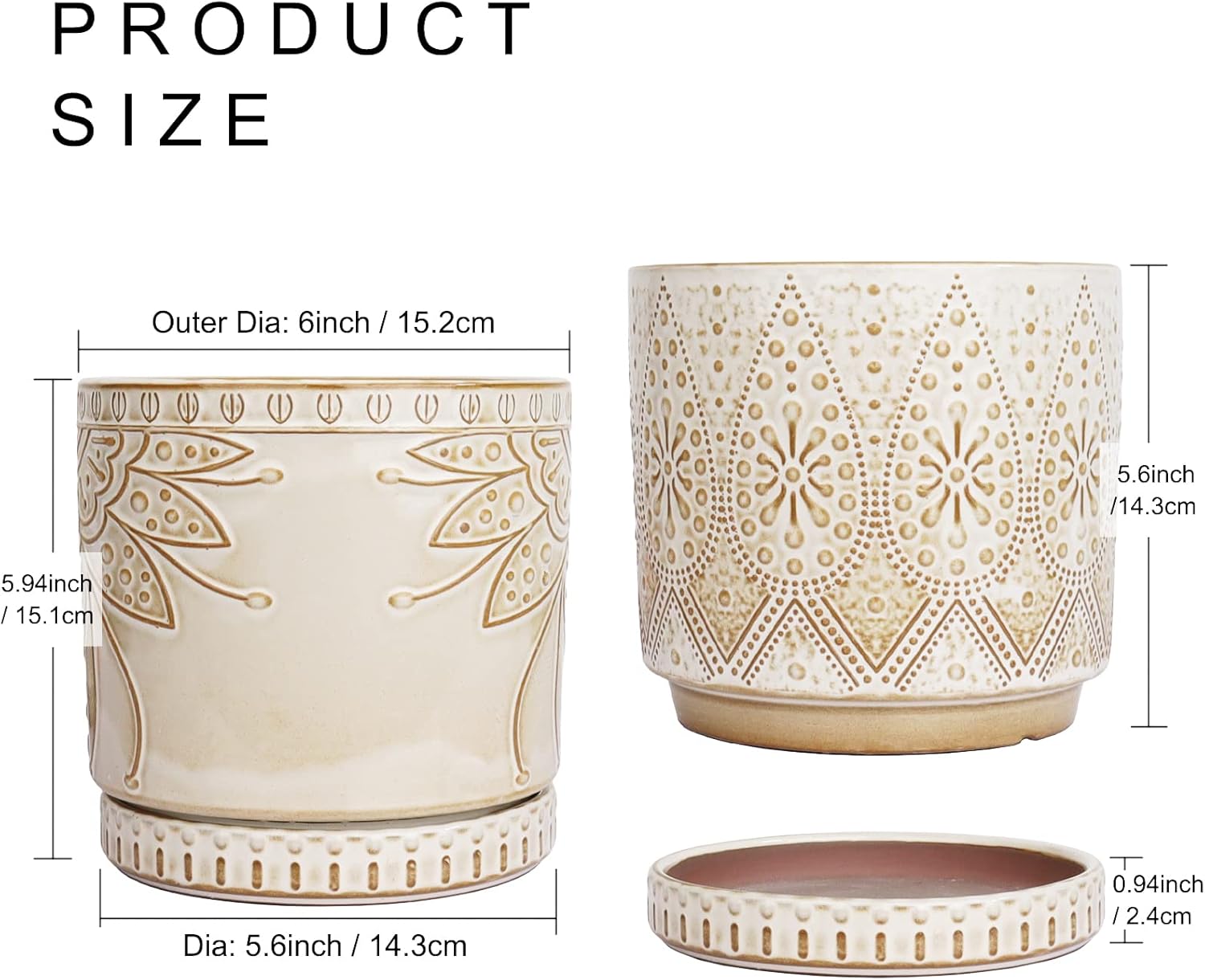 - Size & Package : 6 Inches set of 2. Package: contains 2 ceramic flower pots, 2 ceramic saucers and 2 mesh pads(NOT INCLUDE PLANTS)
