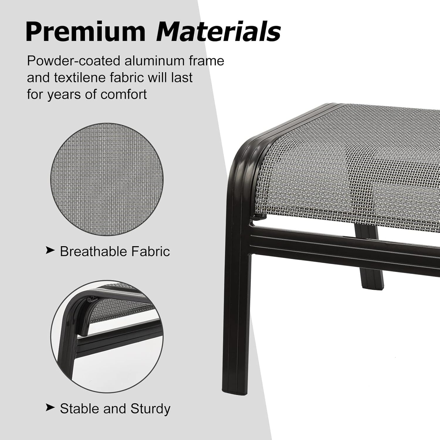 - Structure of the patio ottomans are made of sturdy aluminum and resin textliene, so the ottomans are stable and resilient.In addition, the powder coated surface can prevent chair from rusting for long term use.