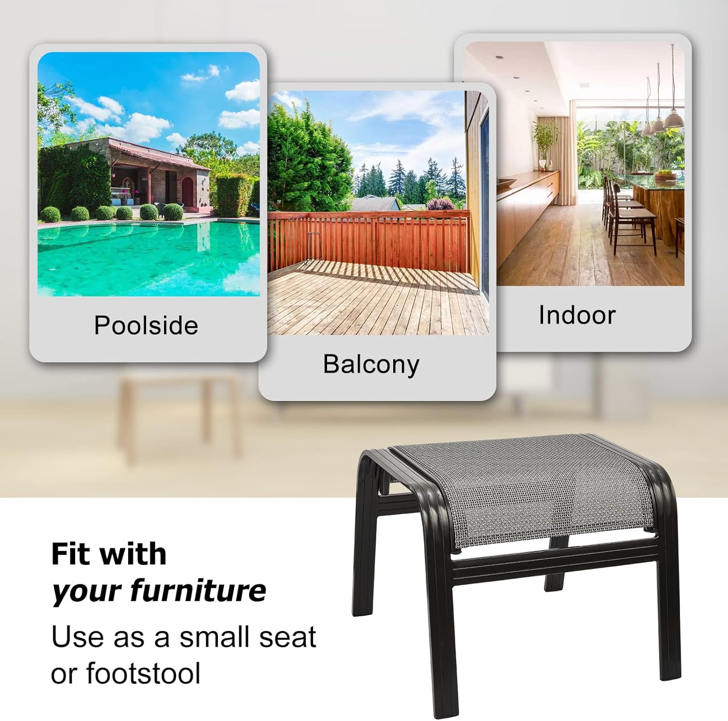 - With the concise design and classic patio appearance, the ottoman can complement with any daily occasions. It can be used anywhere you want, such as courtyards, lawns, gardens, balconies, swimming pools, porches, and indoors.These ottomans will suit you really well with your other furniture.