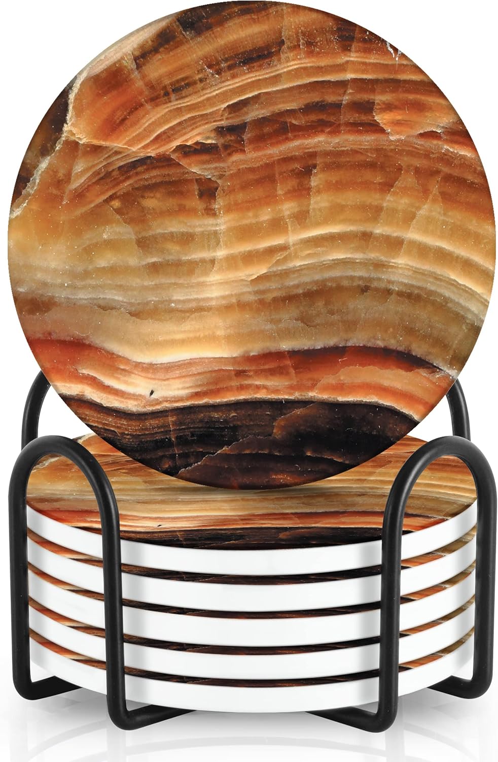- ✅ LARGE SIZE – Our special material ceramic makes the coasters great for drinking beverage glasses, cups and mugs. Giftable idea for family, friends, women and men. Our wide selection includes black, grey, white, gold, brown, funny, mid century pattern, geometric, geode, rustic, minimalist and industrial style. Protects surfaces and absorbs faster than sandstone, soapstone, tile, cork, silicone, quartz, porcelain or marble.