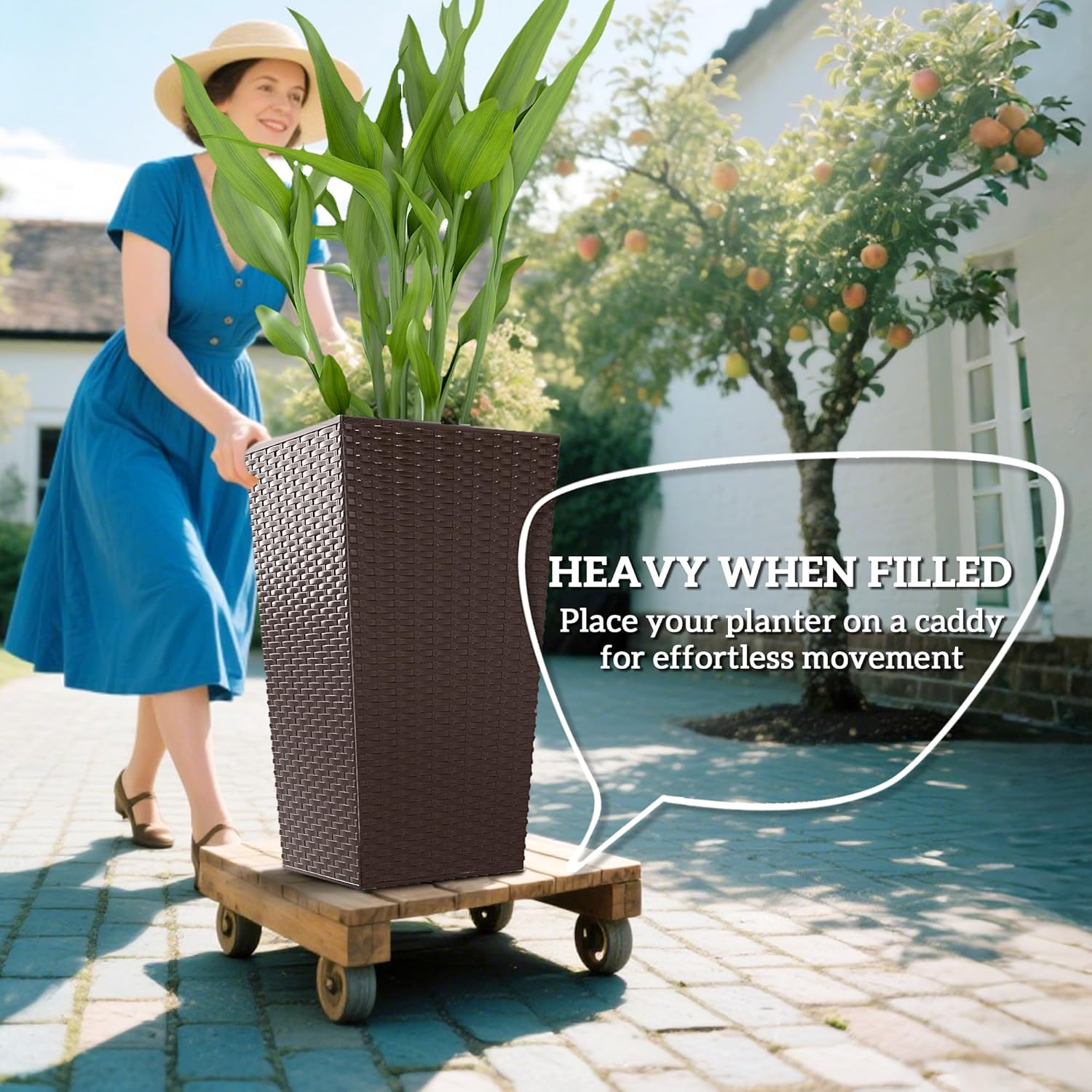 - Natural and Stylish Aesthetic: The tall planters in rattan pattern add a warm, organic texture to outdoor spaces, blending well with boho, tropical, or modern rustic decor