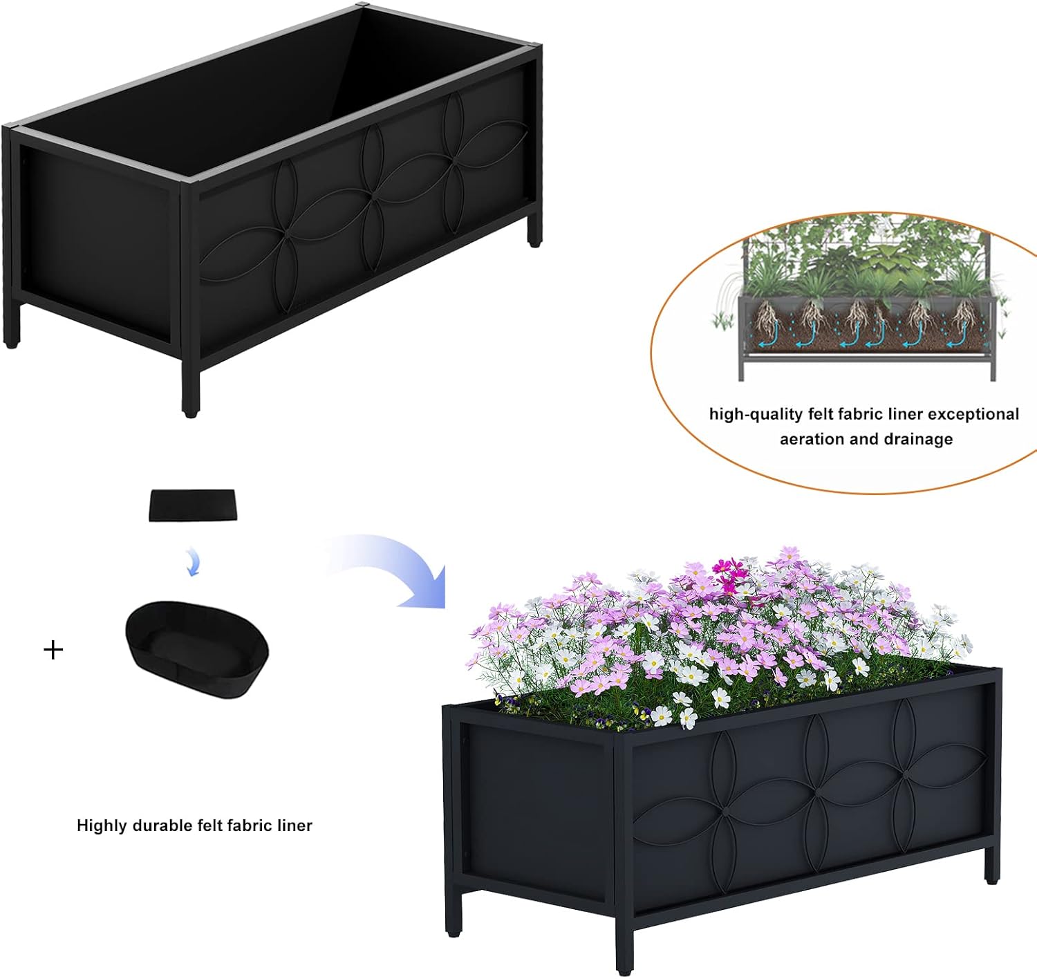 Zhongma Sturdy Raised Garden Bed with Inner Fabric Liners for Vegetables Flower, Planter Box for Backyard Patio Balcony. Inner Size: 33.85x14.17x11 inch