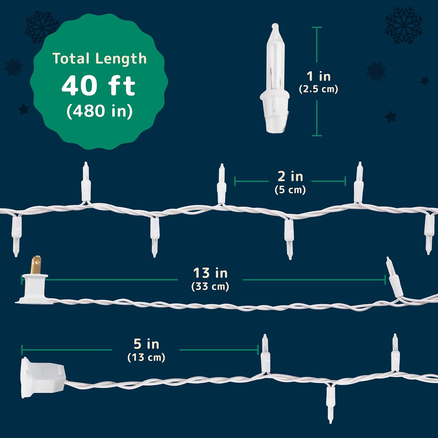 - Complete Holiday Light Set: This 40 ft strand includes 200 white christmas lights with 4 flasher bulbs, 2 replacements, and 4 fuses; provides reliable festive lighting for trees, garlands, and décor