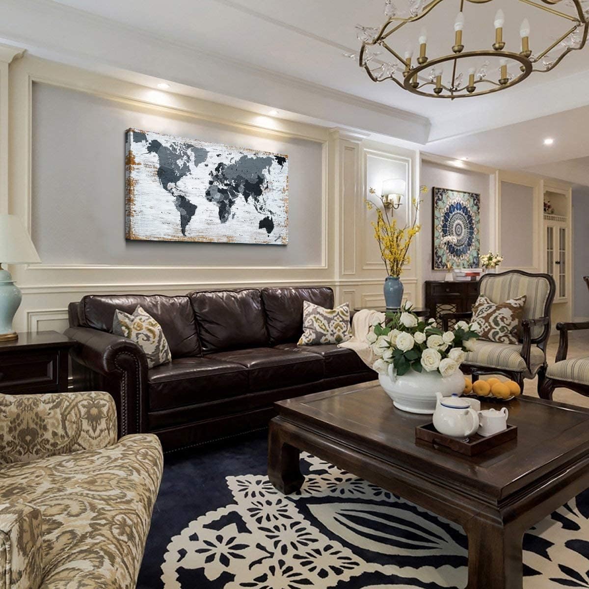 - 💕【Quality Material for World Map Canvas Wall Art】- this abstract wall decor is made of real wood in rustic style, which is thick and solid to serve you for a long time; Real wood with fine texture makes this earth sign will stay good as new even after many years of indoor or outdoor hanging.