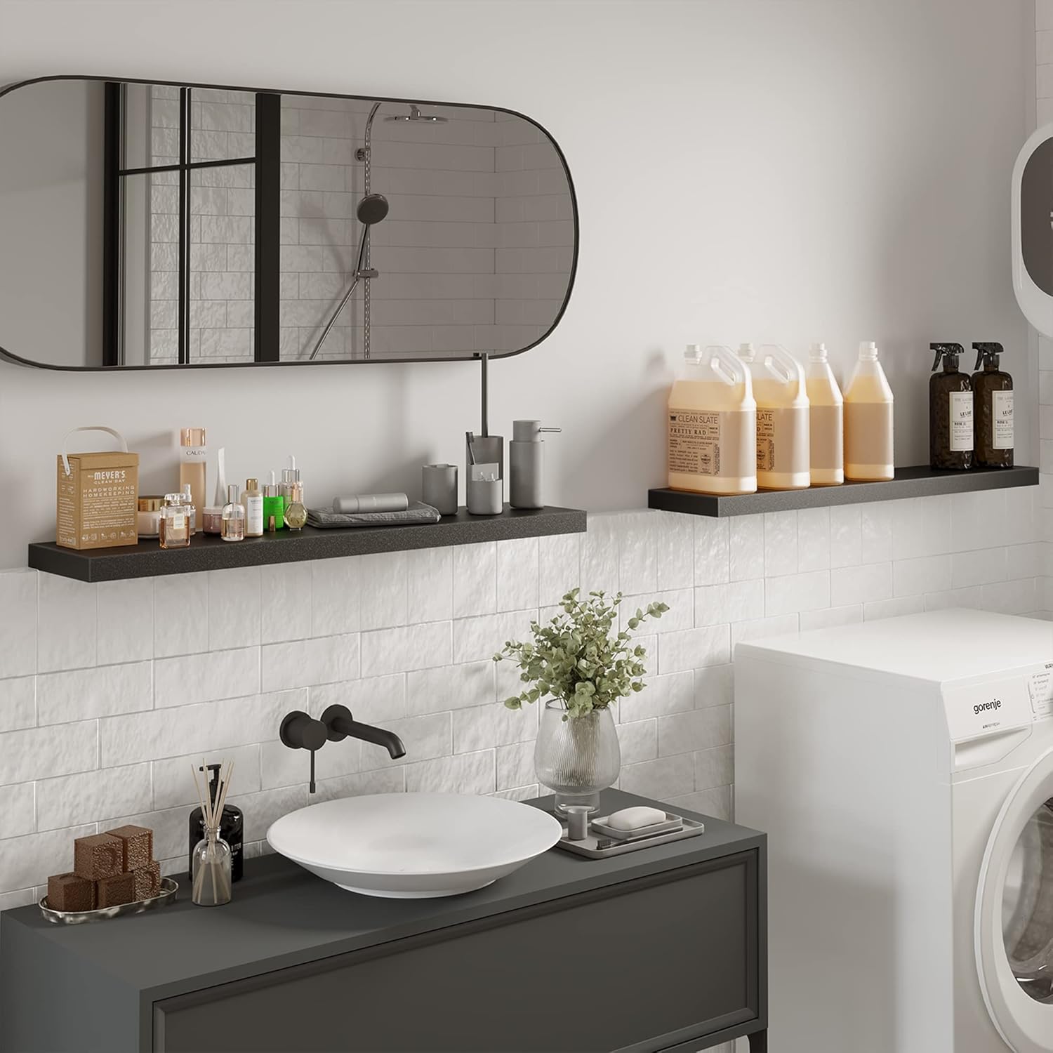 - GREAT FOR ANY ROOM: Our wood floating shelves are made of MDF with a frosted surface texture for a mordern feel that blends perfectly into a variety of different scenes; Having this large floating shelf not only for its decoration effect, but also for its high practicality; It can be used for organizing all household rooms, such as bedroom, living room, study, toilet, cloakroom, even kitchen and warehouse