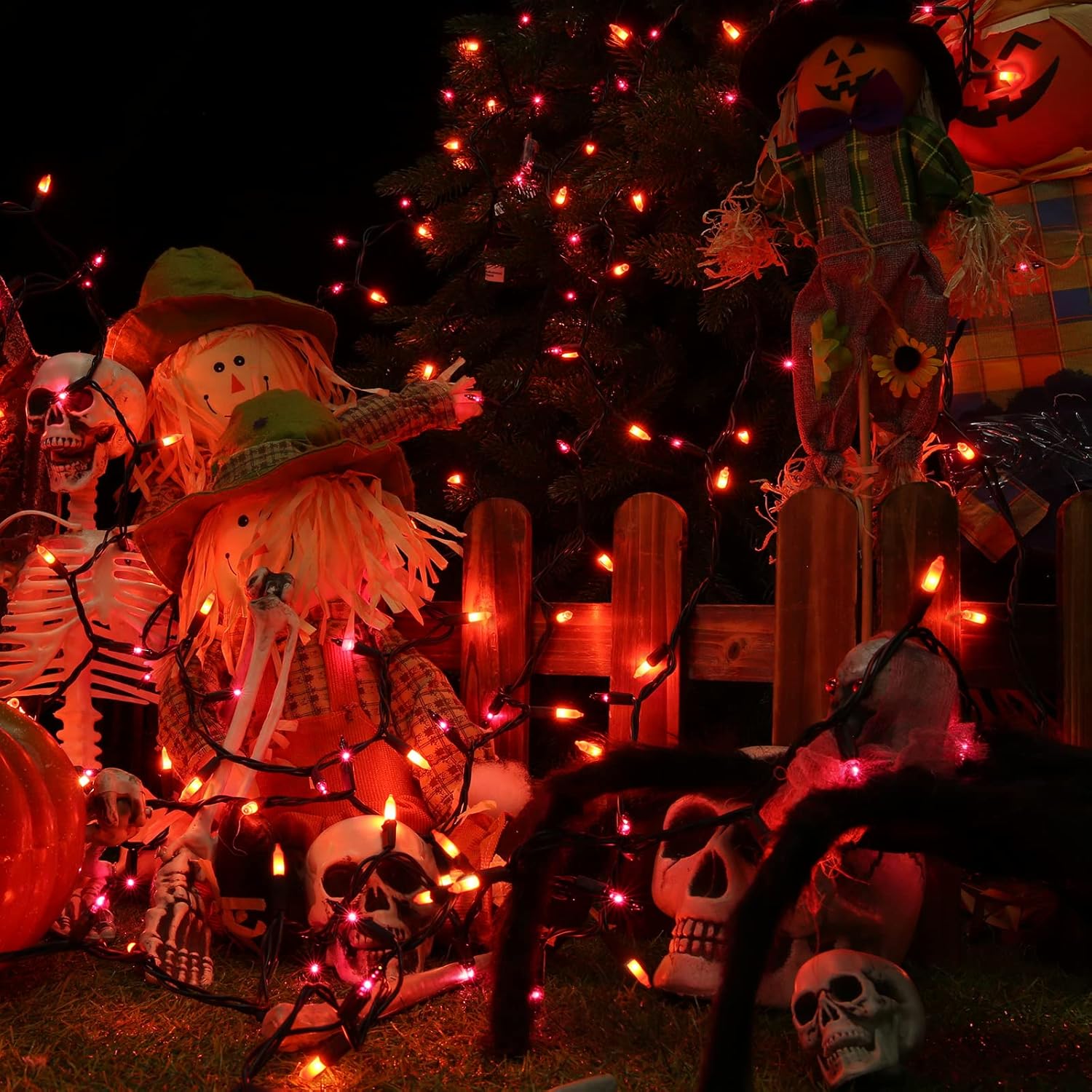 - UL Certified & Connectable Halloween String Lights: Built in fuses, universal 120V UL certified, safer to use when decorate your Halloween theme party. The purple orange string lights with male and female plug, it can be connected end to end to meet your decoration needs, up to 5 sets (500 lights).