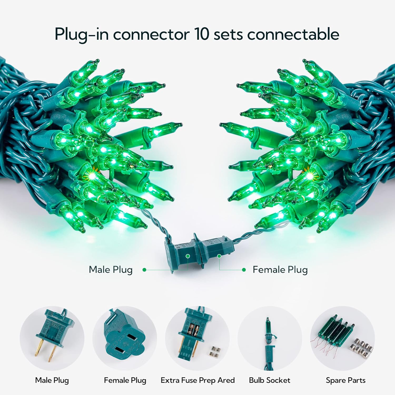 - 🍀50 Vibrant Lights with Perfect After Sale :Old-fashion green incandescent Christmas light set, creates a warm and festive atmosphere, surely lights up your house, let your home become a fantastic sight to behold in your neighborhood! With green wire, ideal for a tree, bedroom, patio decorations!If you have any reason you don't enjoy it, just send us a message and we will refund 100% or replace your purchase.