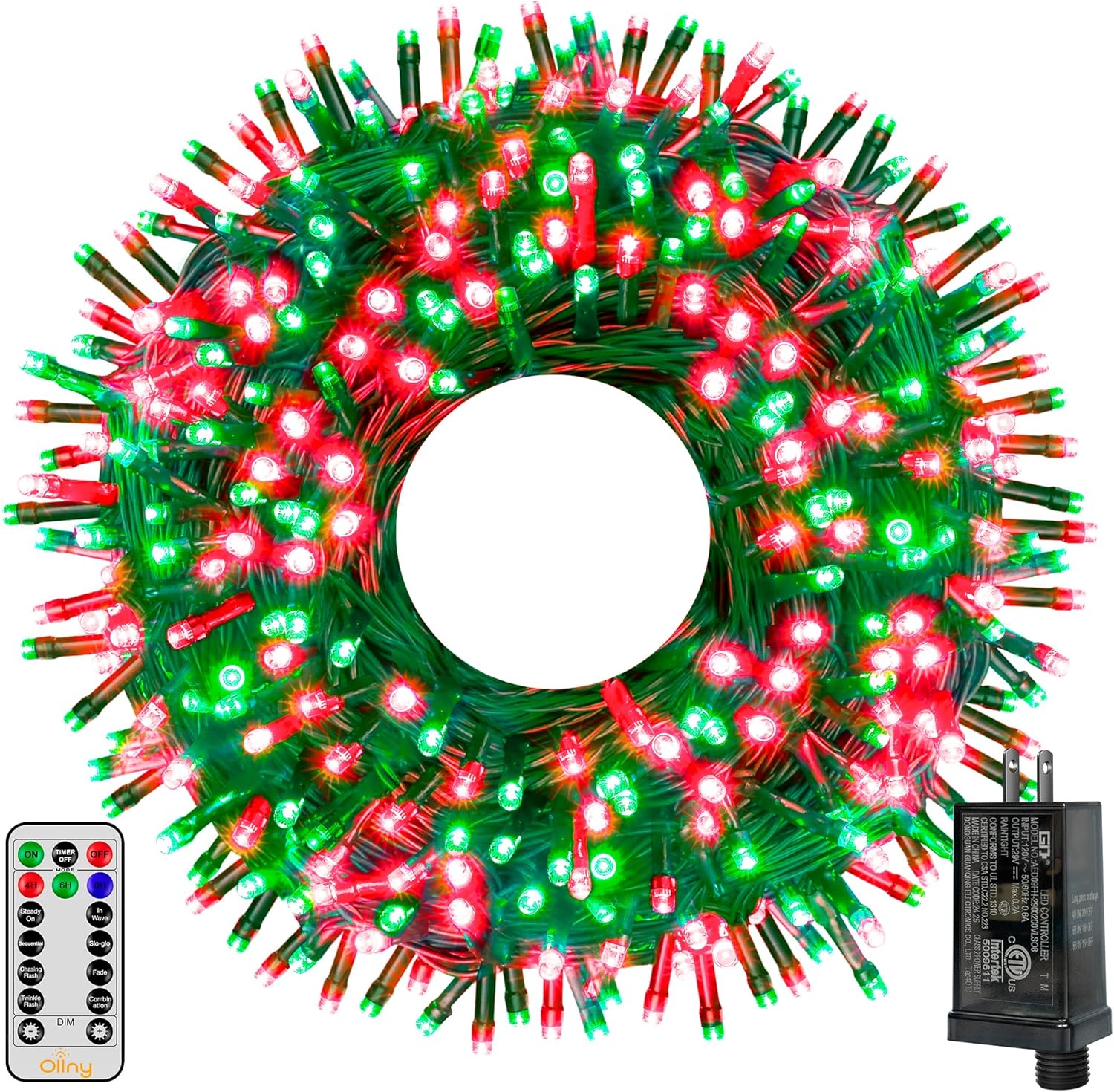 Ollny Christmas Lights, 500LED 164FT Long Christmas Tree Lights with 8 Modes Remote Timer IP44 Waterproof, Outdoor Christmas Lights for Tree House Yard Outside Xmas Decorations (Red+Green)