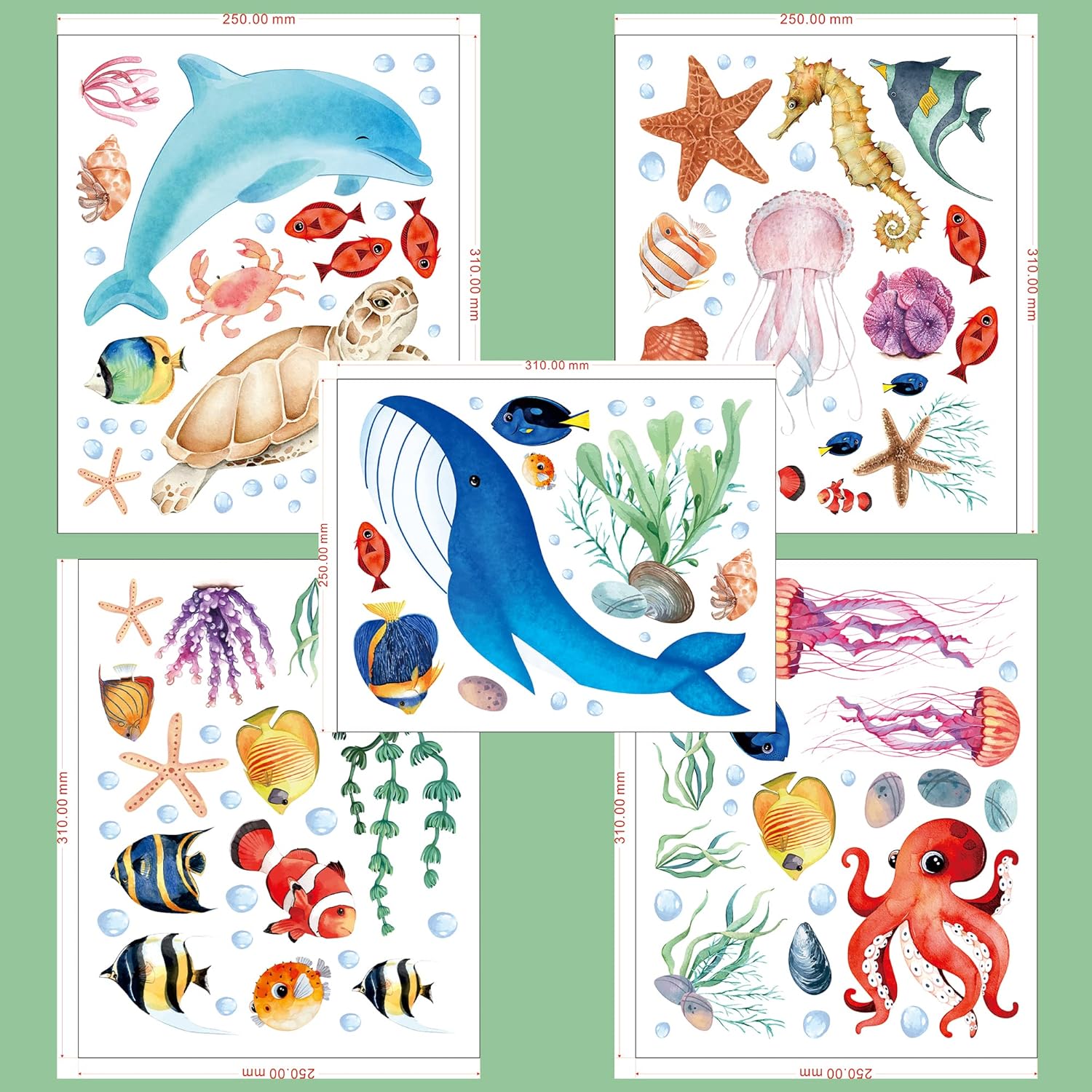 - 【Premium Quality】Our sea ocean decals are made of high quality vinyl and pvc material, self-adhesive, safe and non-toxic, removable, durable and waterproof. the sea animals'color are bright and long- lasting, not easy to fade.